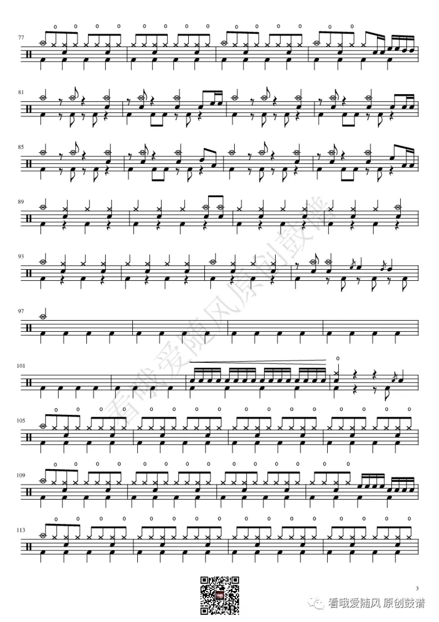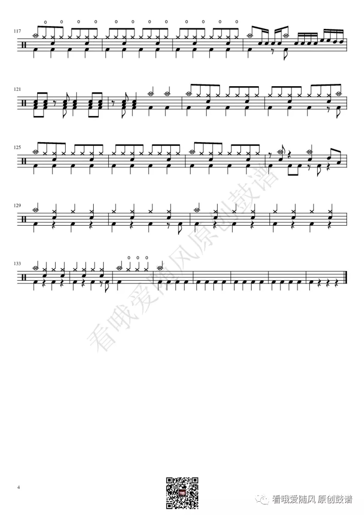 架子鼓谱原调来源:看哦爱随风原创鼓谱4190 浏览2022-07-07 16:52发布图谱共4页