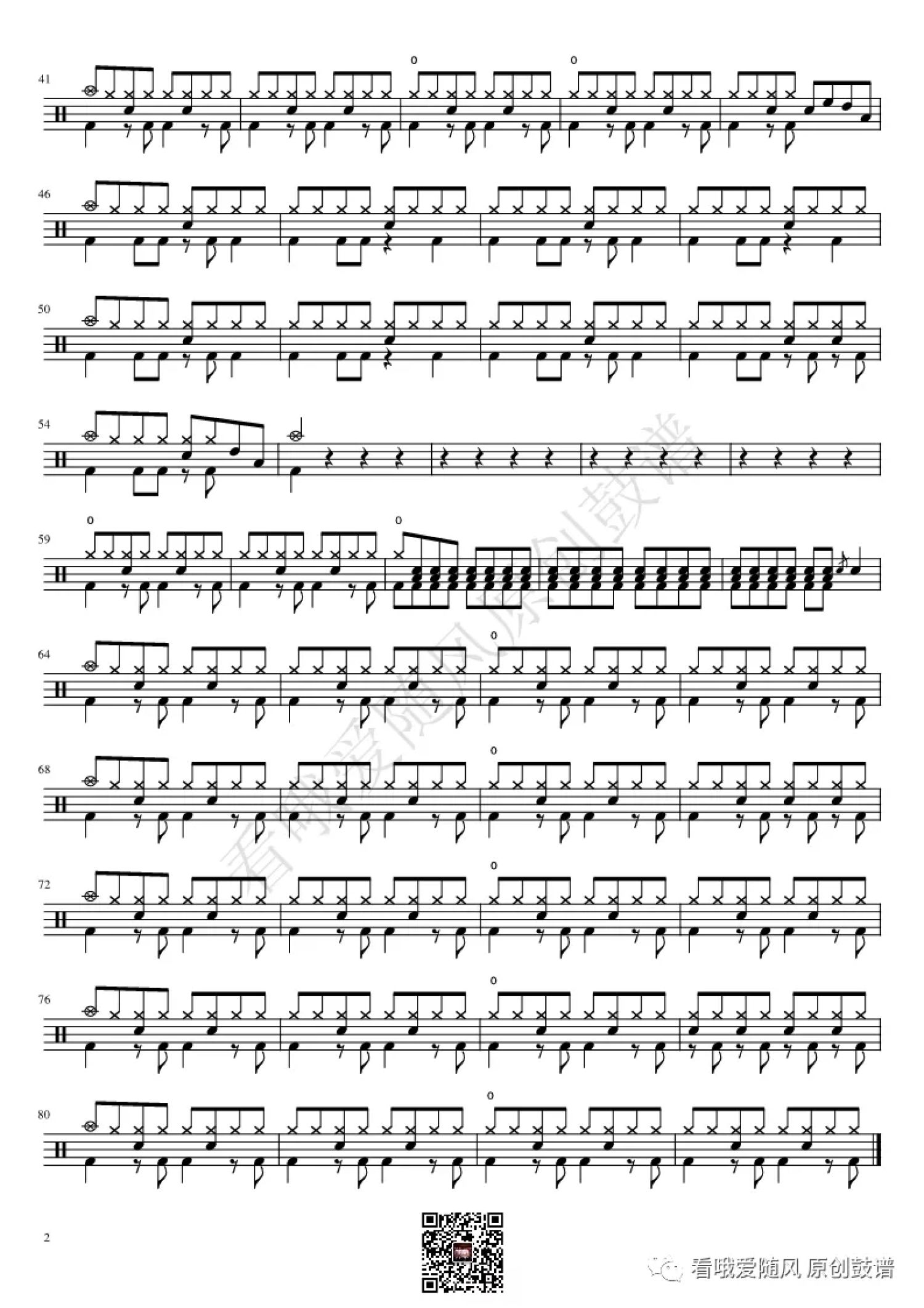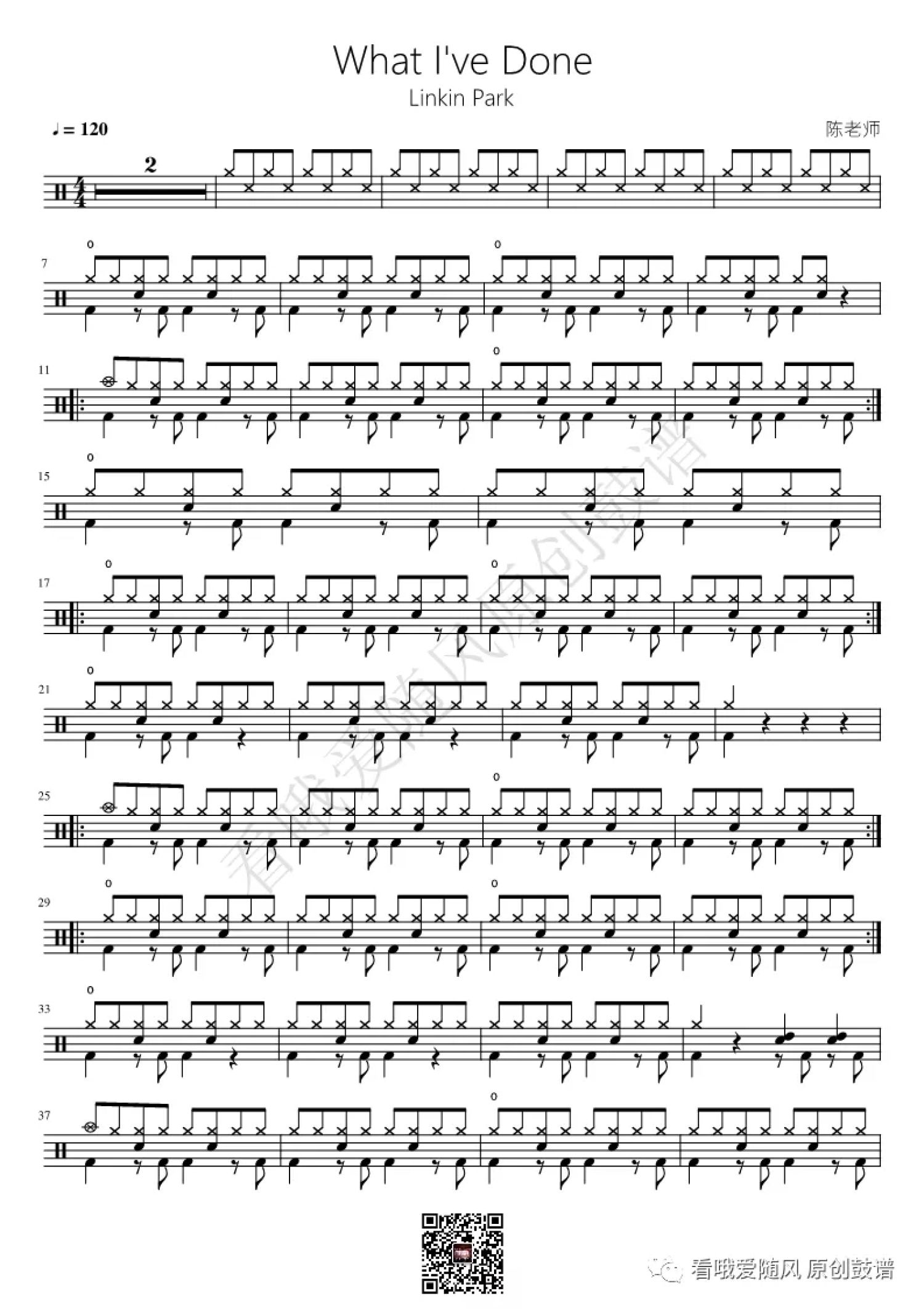 曲谱介绍: 林肯公园《What l've Done》鼓谱_架子鼓谱,本谱来自 @看哦爱随风原创鼓谱 编配,共2页。