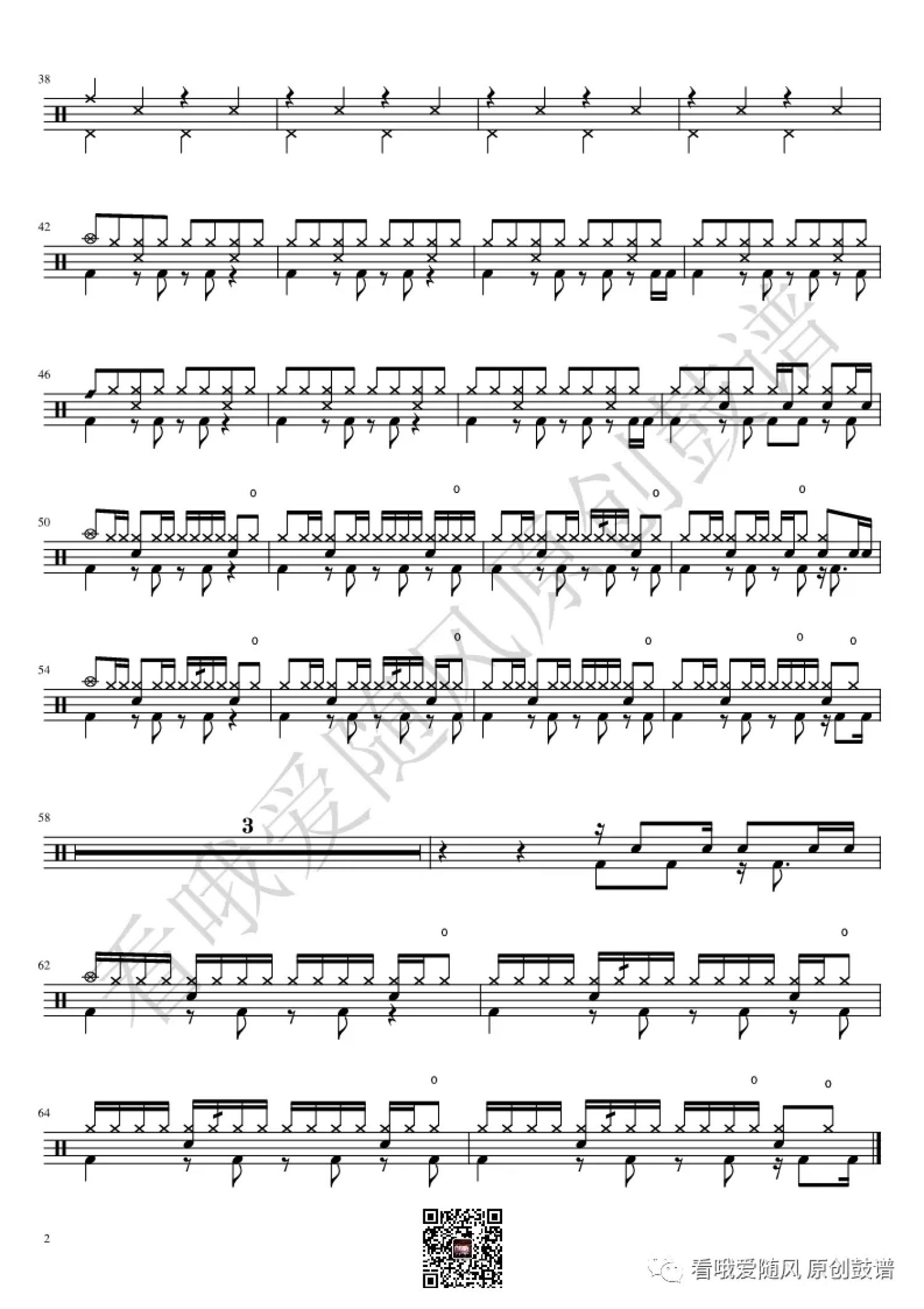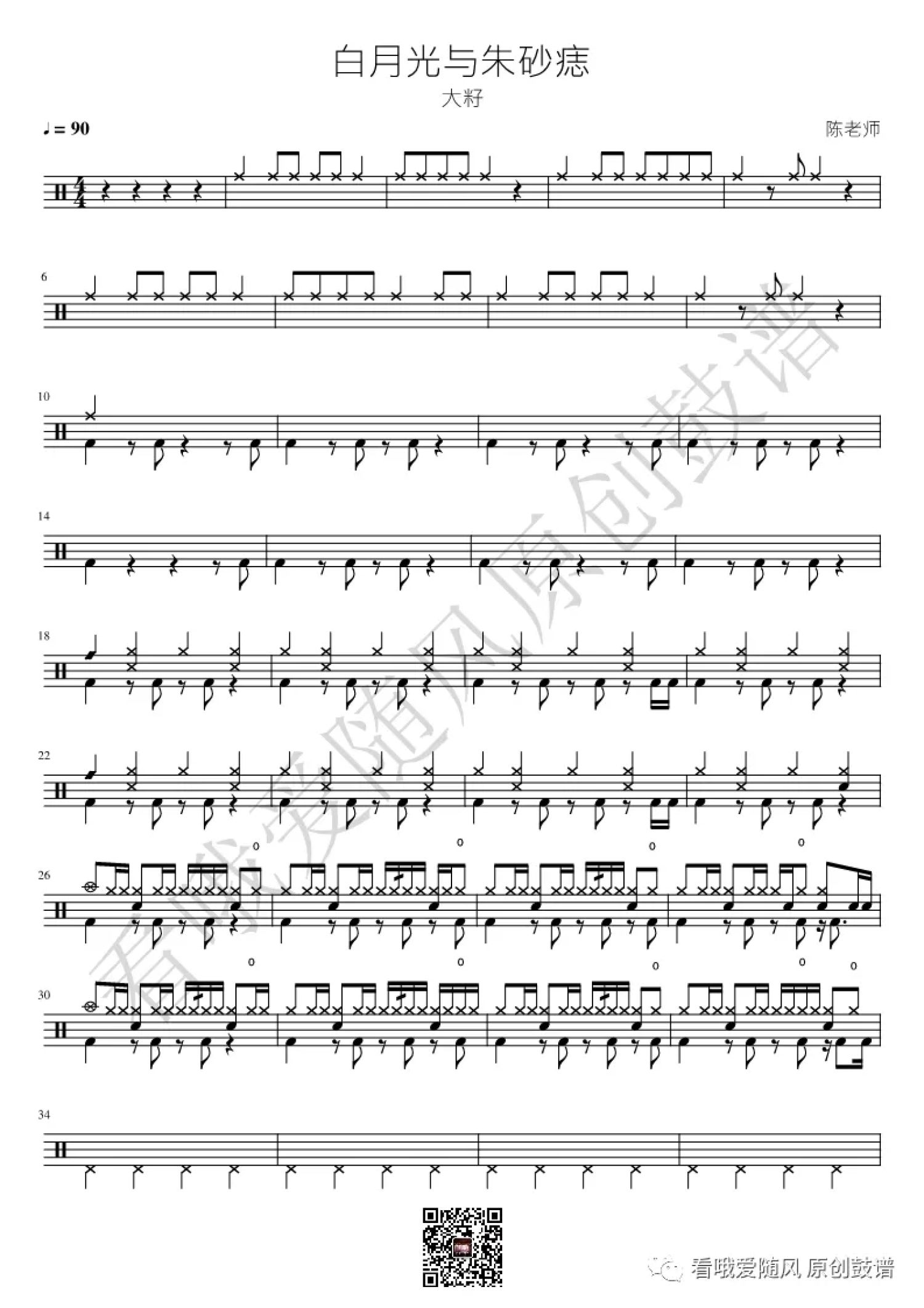 曲谱介绍: 大籽《白月光与朱砂痣》鼓谱_架子鼓谱,本谱来自 @看哦爱随风原创鼓谱 编配, 扒谱服务 请联系 看哦爱随风原创鼓谱  微信:Cthcyb