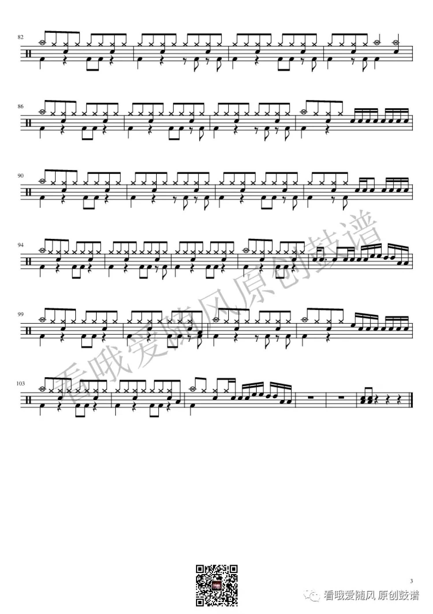 架子鼓谱原调来源:看哦爱随风原创鼓谱984 浏览2022-07-07 16:51发布图谱共3页
