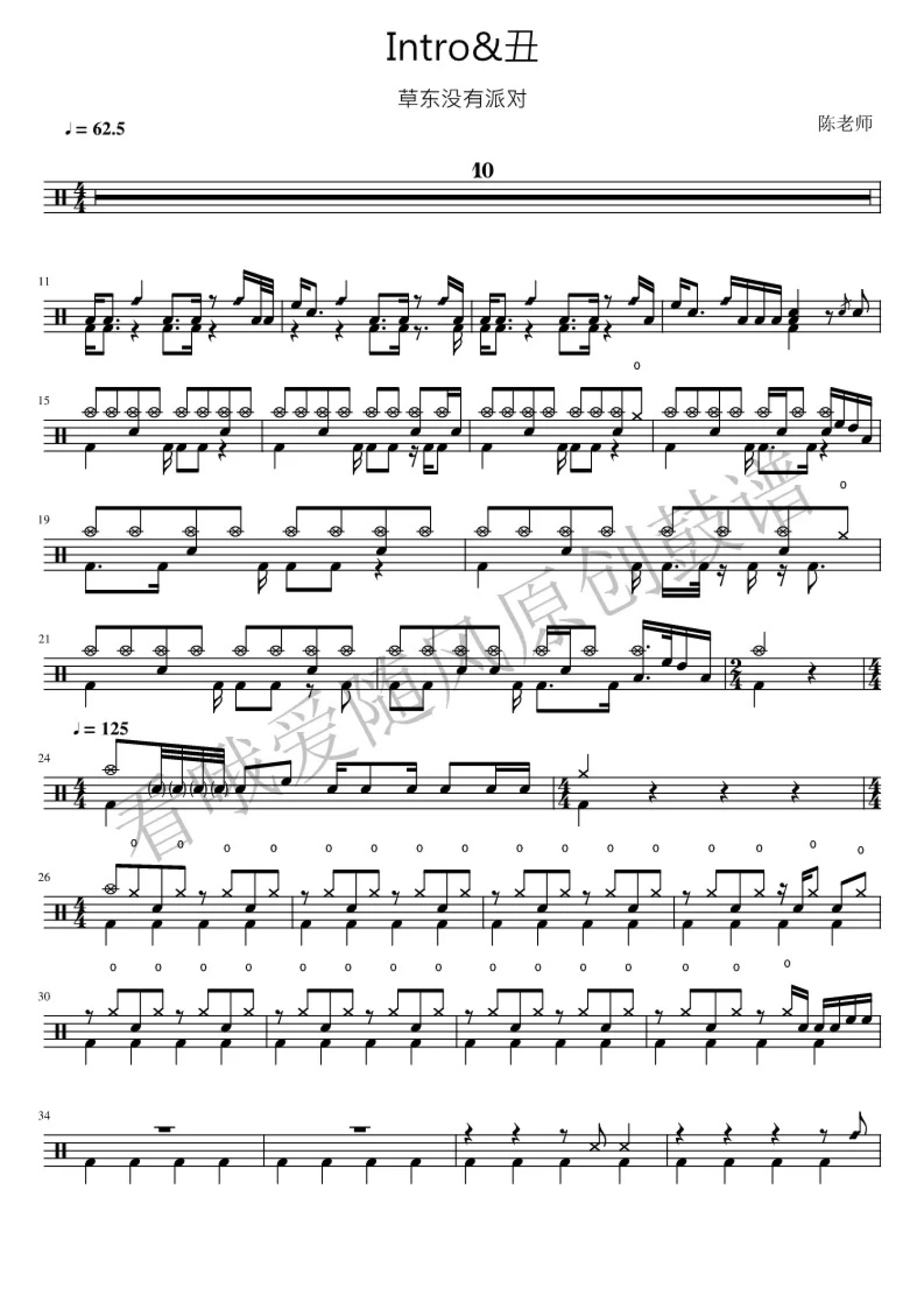 曲谱介绍: 草东没有派对《丑》鼓谱_架子鼓谱,本谱来自 @看哦爱随风原创鼓谱 编配, 扒谱服务 请联系 看哦爱随风原创鼓谱  微信:Cthcyb