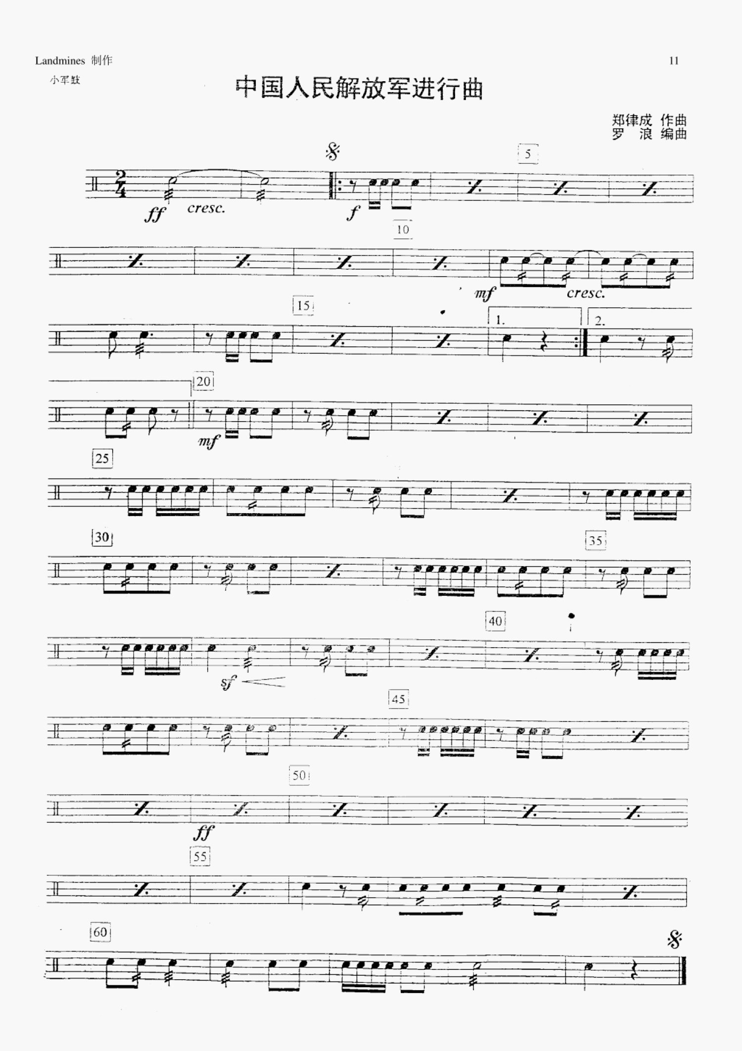 当前位置:琴谱网>架子鼓谱>中国人民解放军进行曲