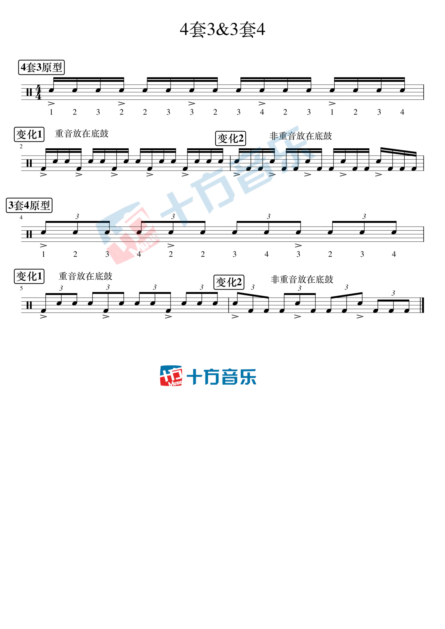 曲谱介绍: 基本功《4套3》鼓谱_架子鼓谱