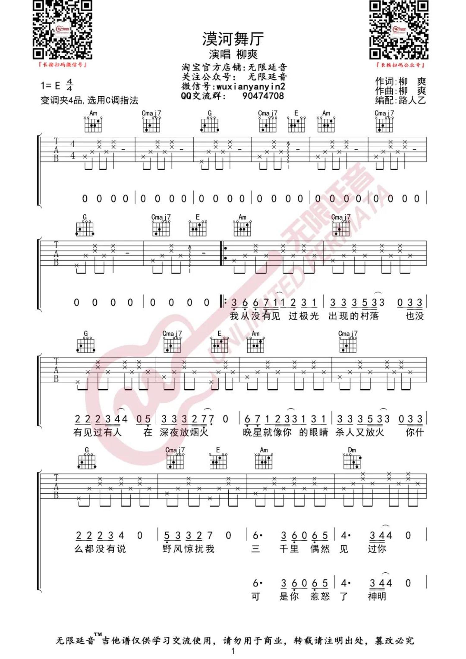 曲谱介绍: 《漠河舞厅》是由柳爽作词作曲并演唱的一首歌,背景故事中的原型人物张德全(同音)老人,在1987年举国震惊的“五六漠河特大火灾中,他的爱妻不幸丧生火海,往后30余年,老人未再婚,二人生前也未育有子女。老人妻子生前很爱跳舞,他们常常在旧仓库里点起灯一起学习舞蹈。偶然得知了这个故事的梗概,在征得本人同意后,创作了这首作品。