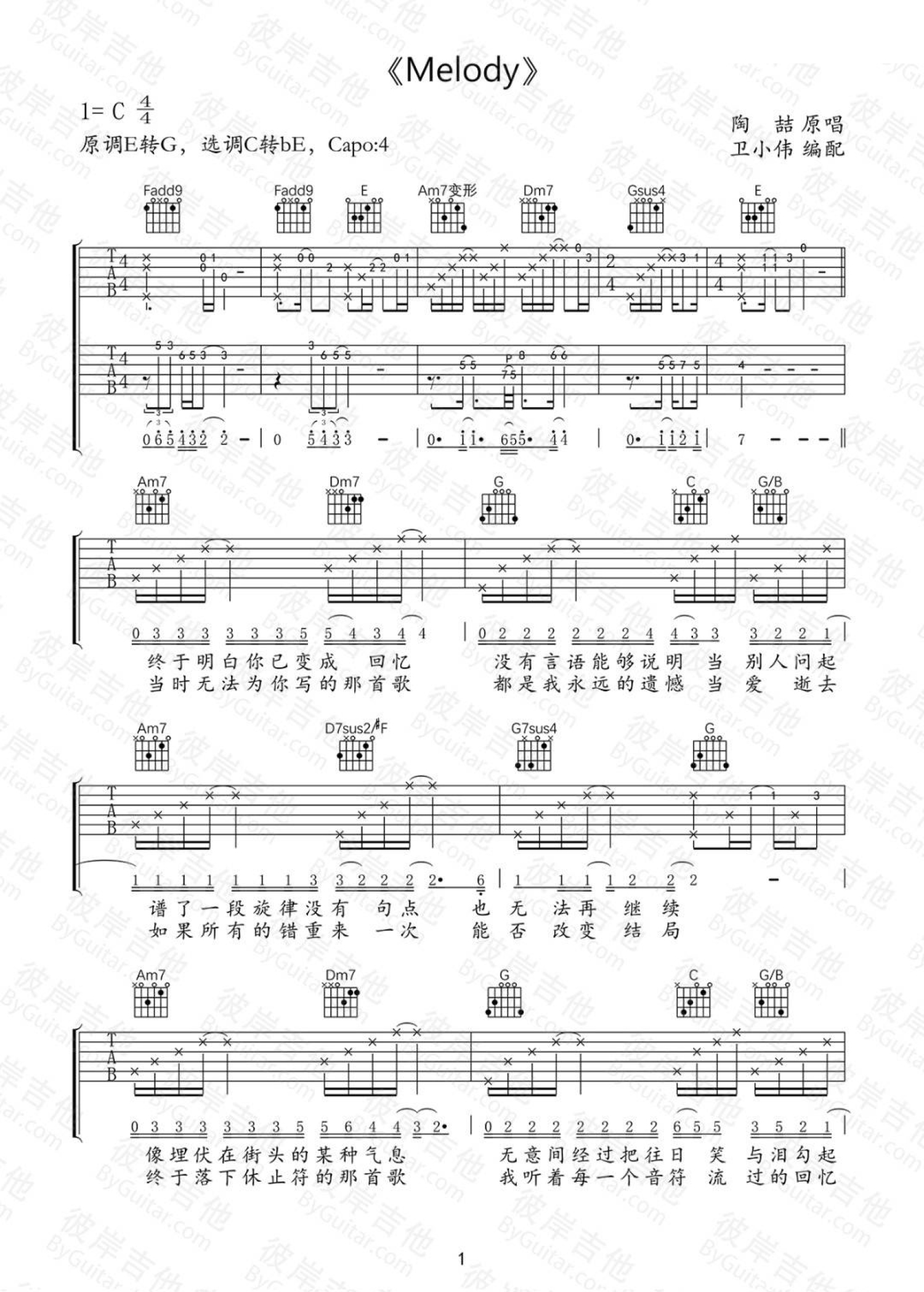 melody吉他谱 - 陶喆 - C调吉他弹唱谱
