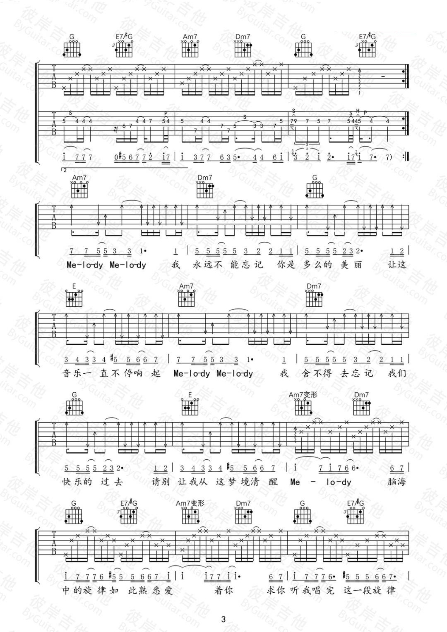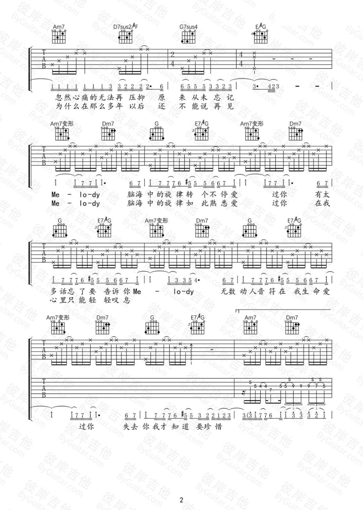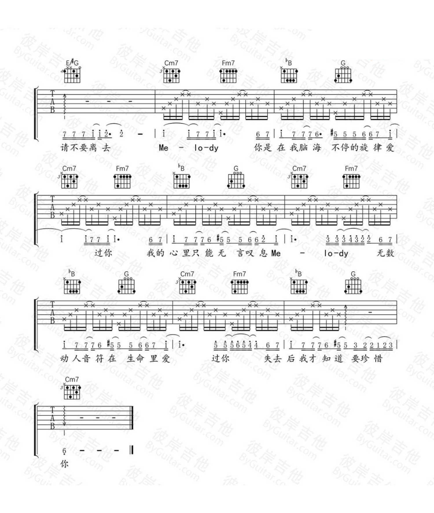 当前位置:琴谱网>吉他弹唱>melody