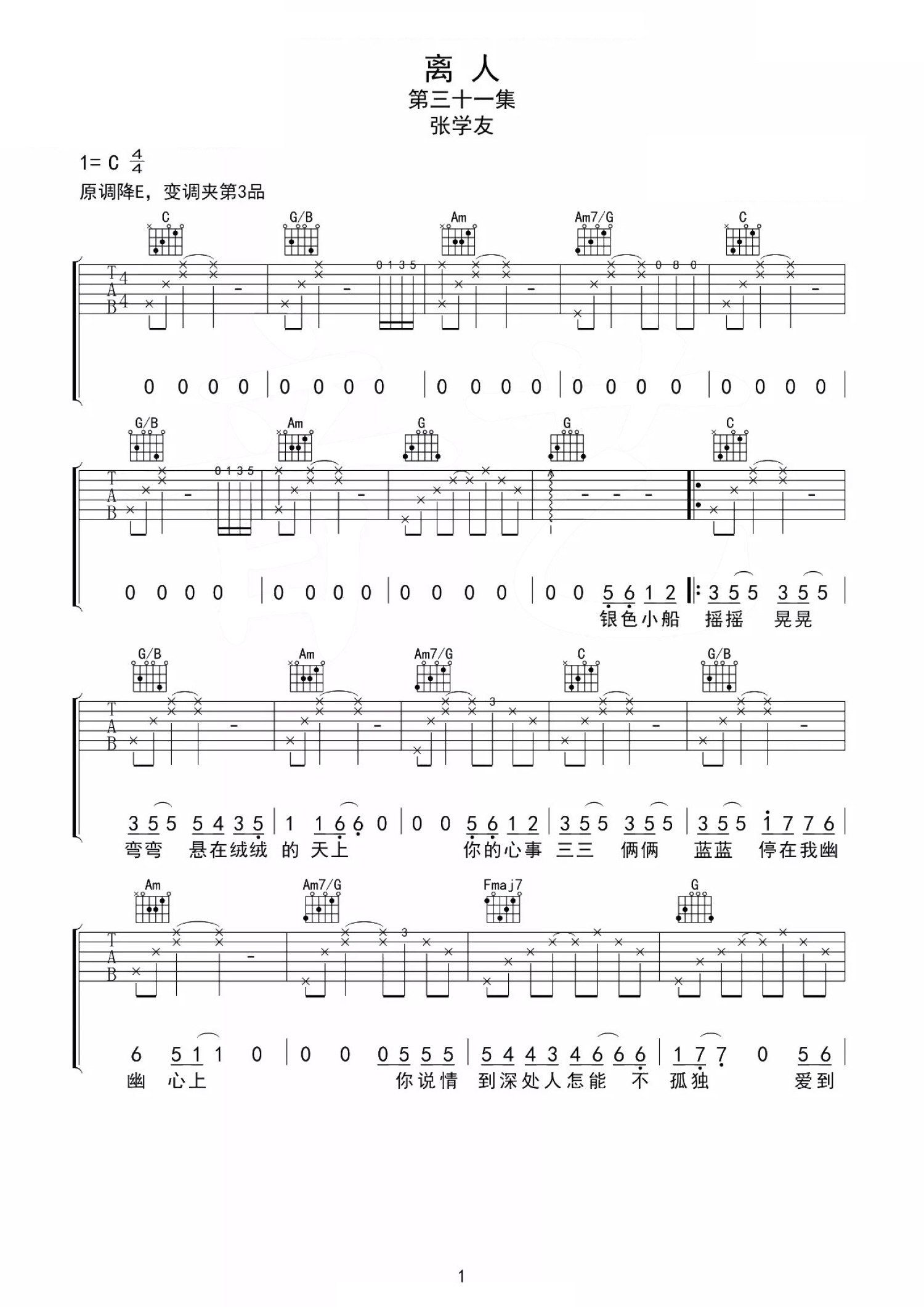 离人吉他谱 - 张学友 - C调吉他弹唱谱