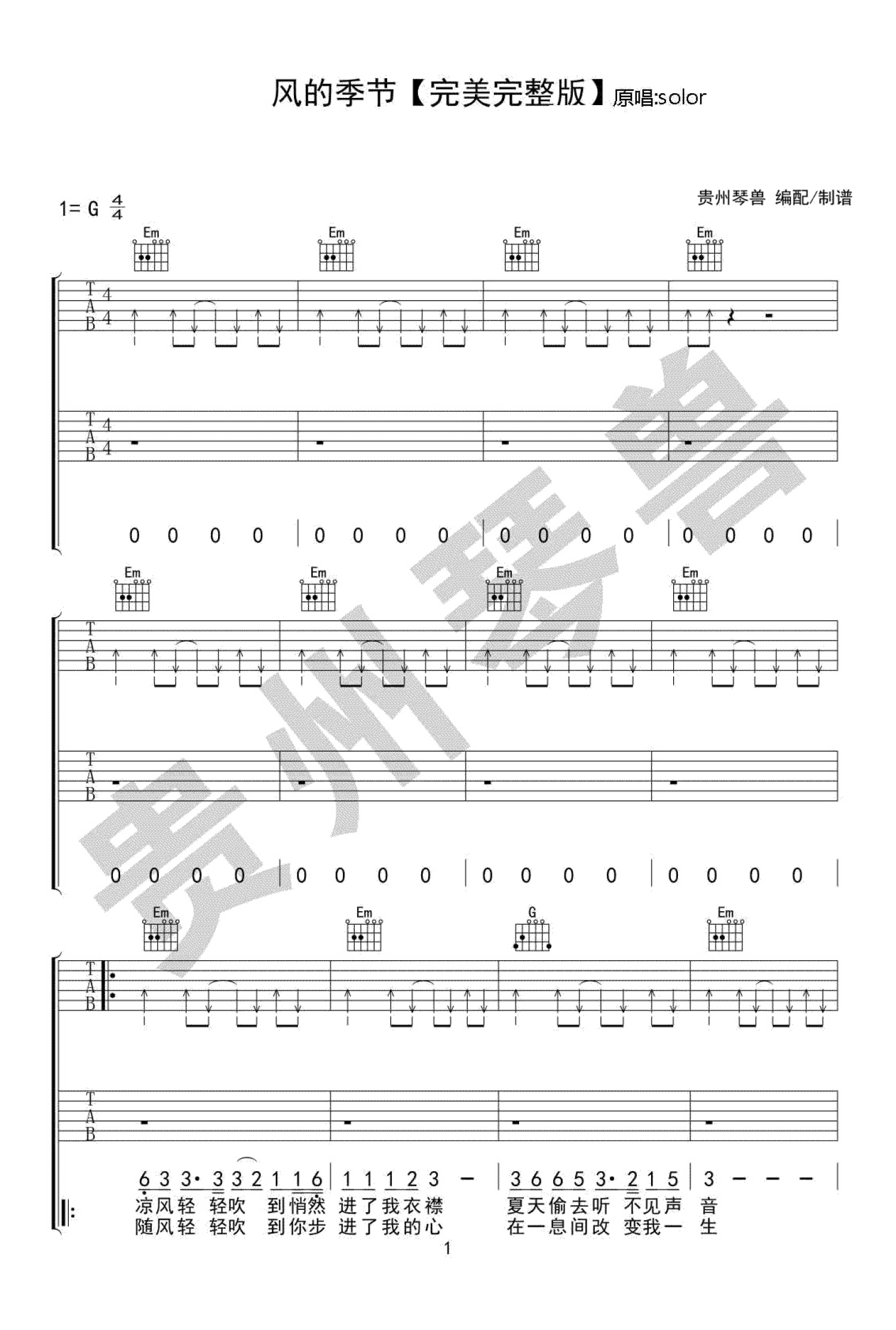 曲谱介绍: 风的季节吉他谱,徐小凤的一首经典粤语歌曲,风的季节六线谱,G调弹唱谱,《风的季节》是一首由徐小凤演唱的上世纪流行金曲,原歌曲旋律婉转轻快,soler重新编曲演绎,以摇滚重金属的方式赋予这首歌新生,利落洒脱,声线饱满极具感染力。
