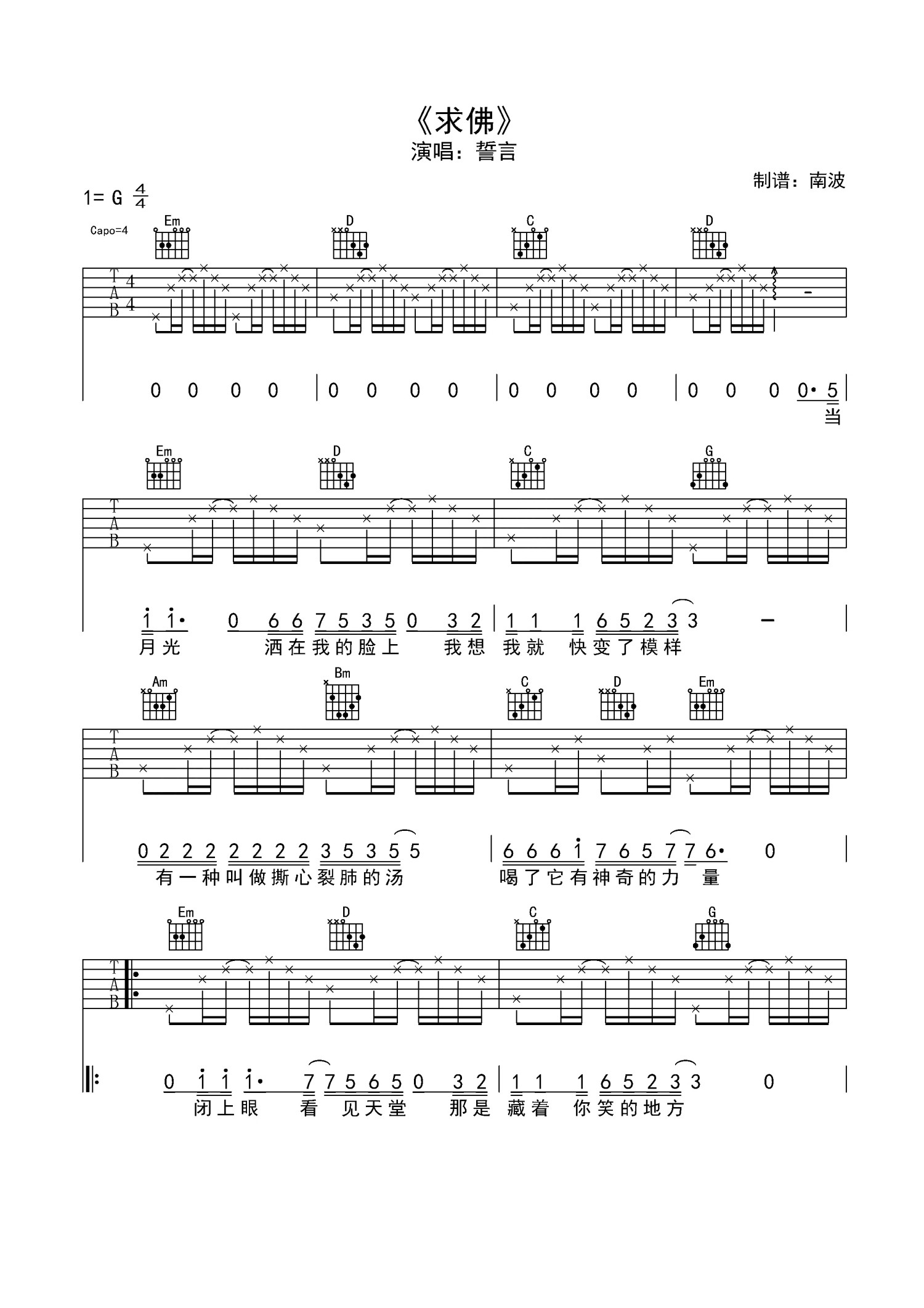 曲谱介绍: 誓言《求佛》吉他谱_G调吉他弹唱谱