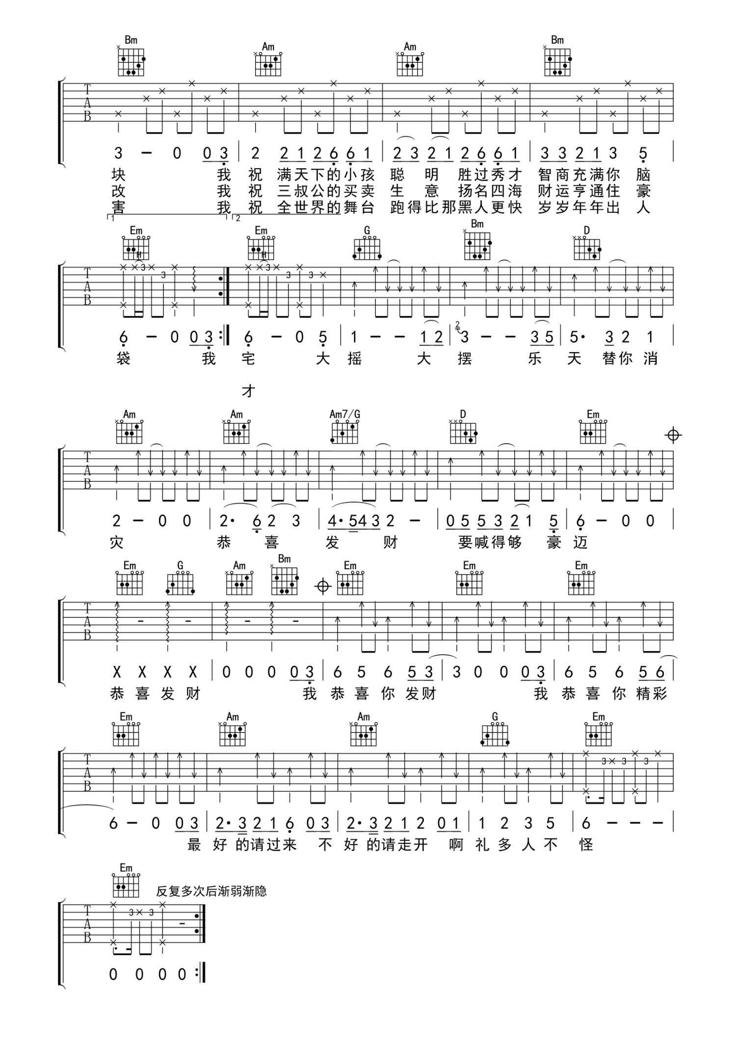 当前位置:琴谱网>吉他弹唱>恭喜发财
