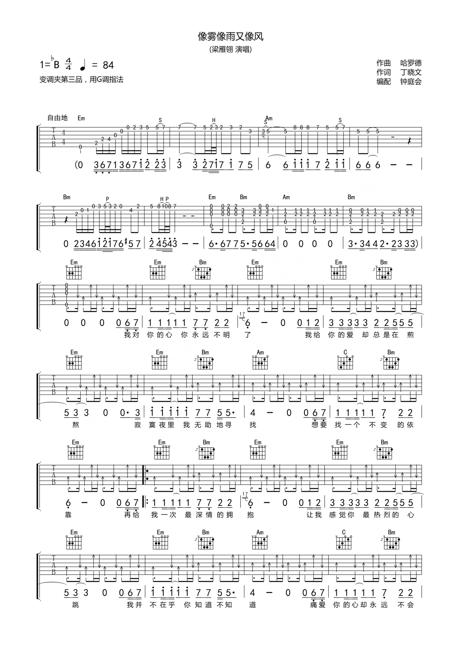曲谱介绍: 梁雁翎《像雾像雨又像风》吉他谱_G调吉他弹唱谱