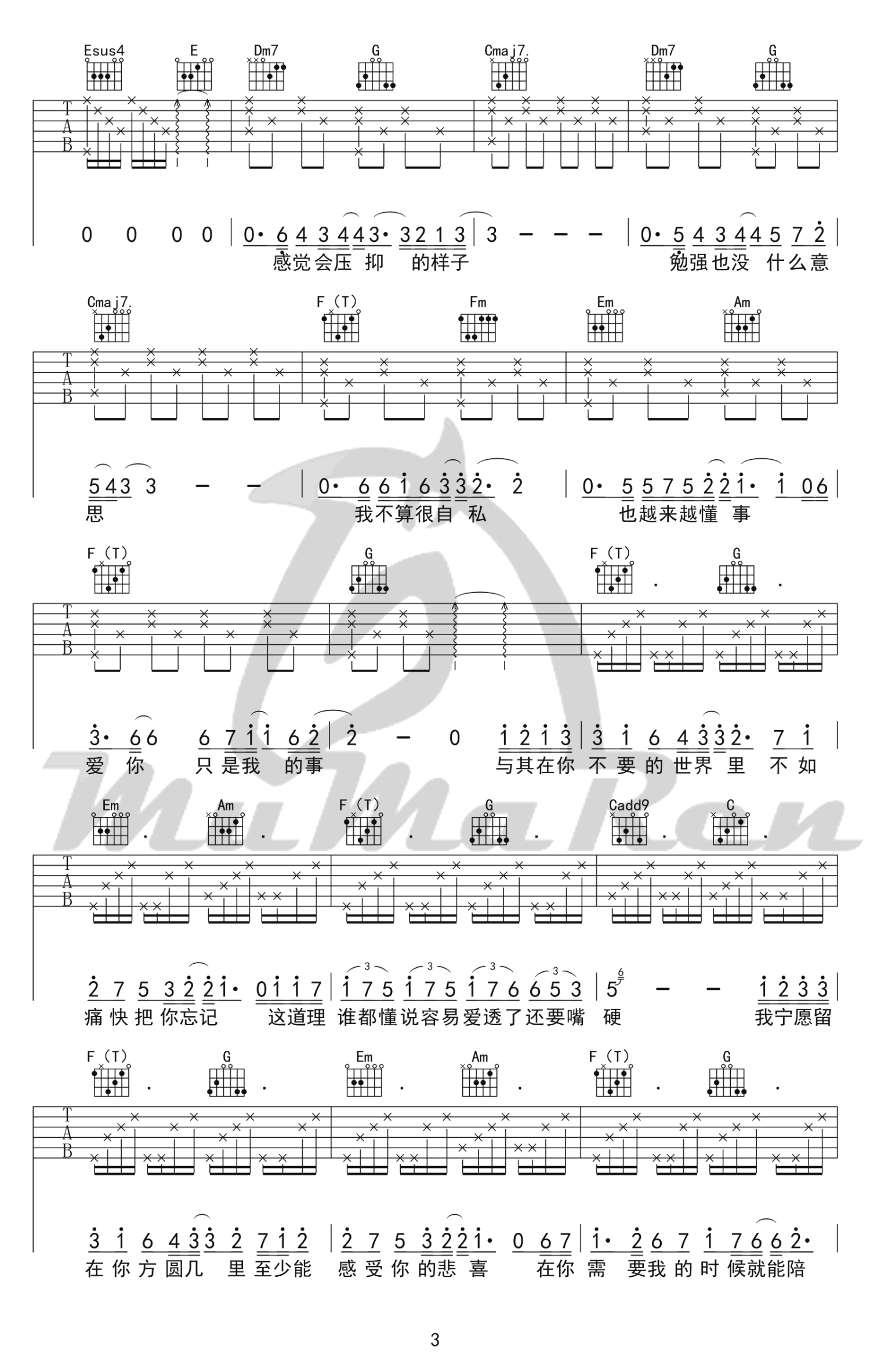 曲谱介绍: 原调C转D,曲谱采用C调指法。感谢张路明编配。《方圆几里》是薛之谦自己作曲填词演唱的歌曲,“爱你,只是我的事”,歌曲表达了爱一个人不求回报的刻骨铭心的深情。