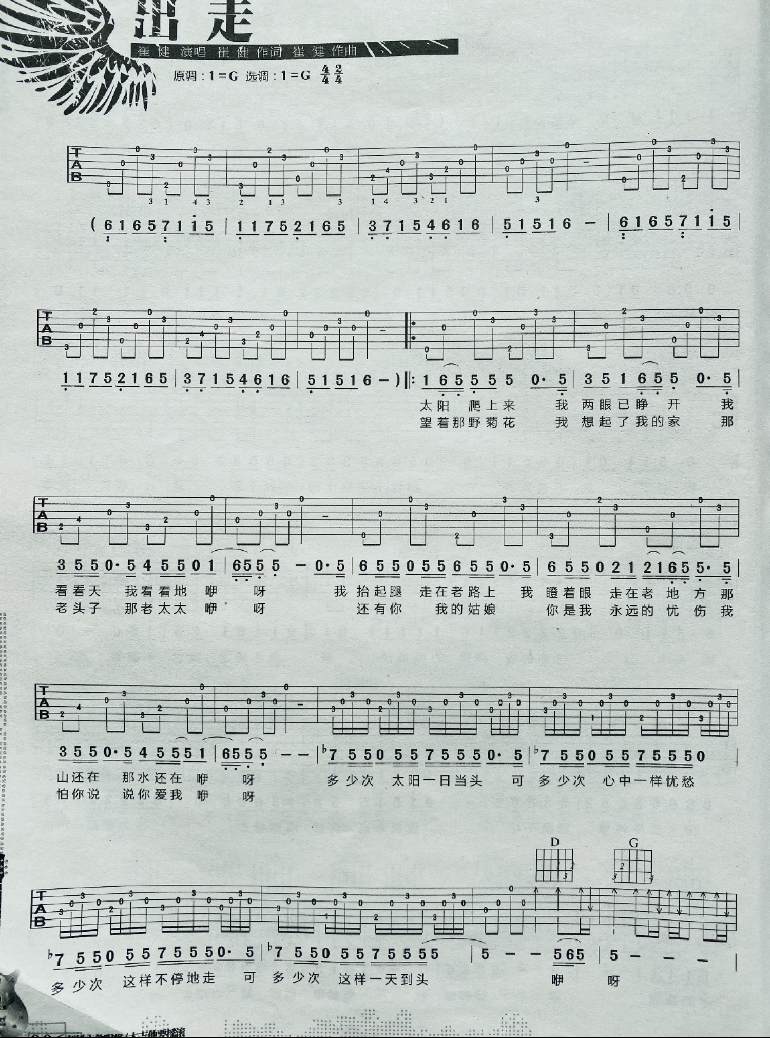 出走吉他谱 - 崔健 - G调吉他弹唱谱