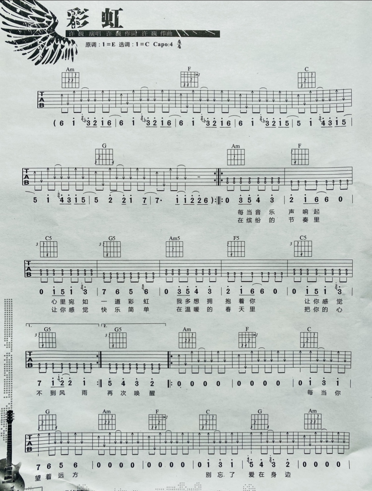 曲谱介绍: 许巍《彩虹》吉他谱_C调吉他弹唱谱