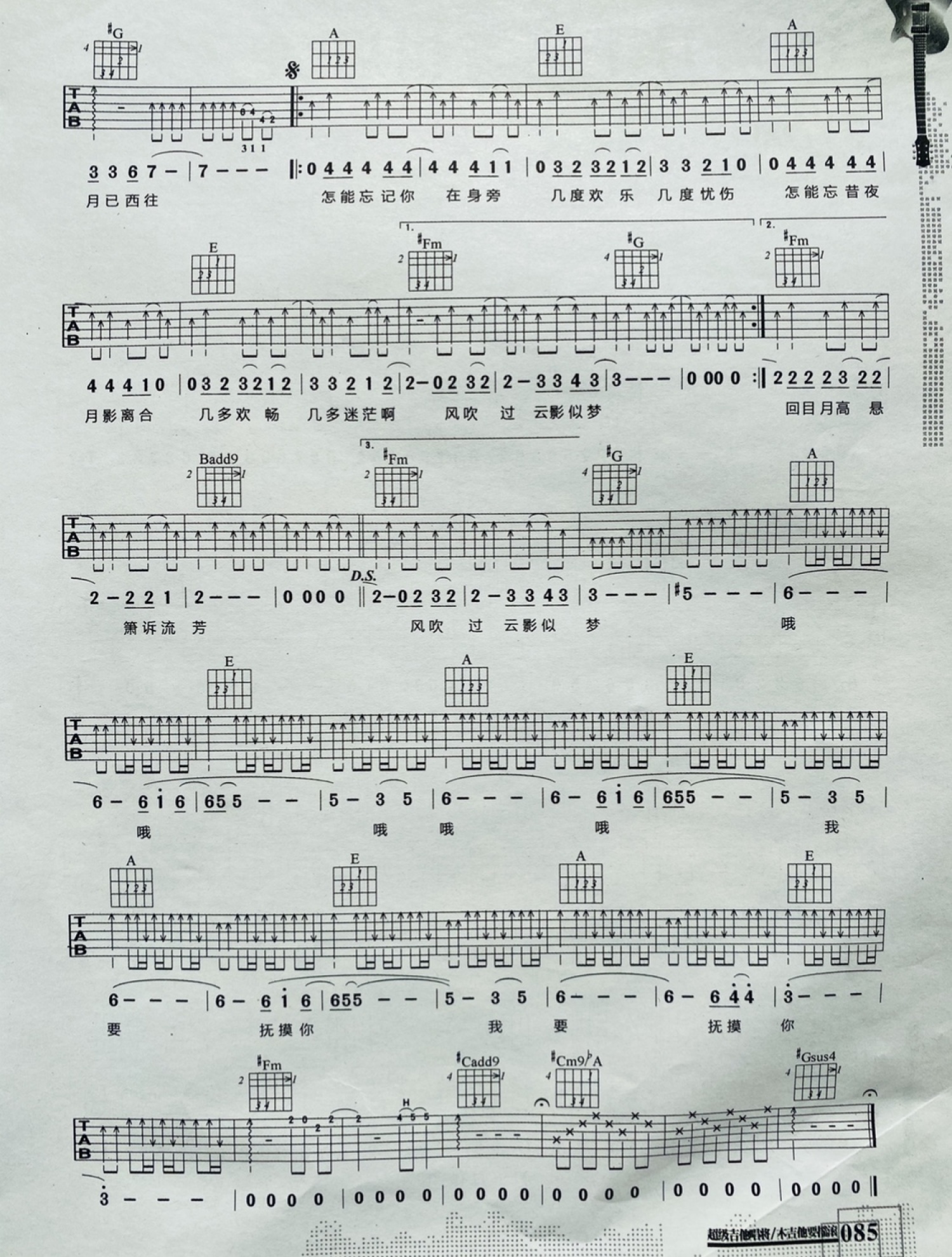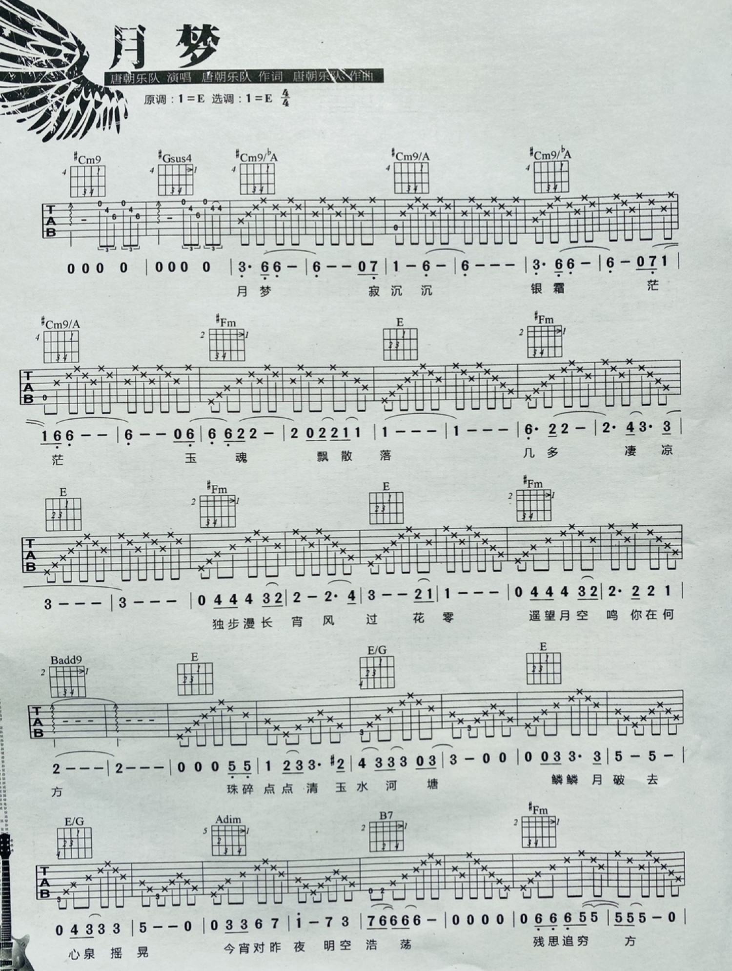 曲谱介绍: 唐朝乐队《月梦》吉他谱_E调吉他弹唱谱