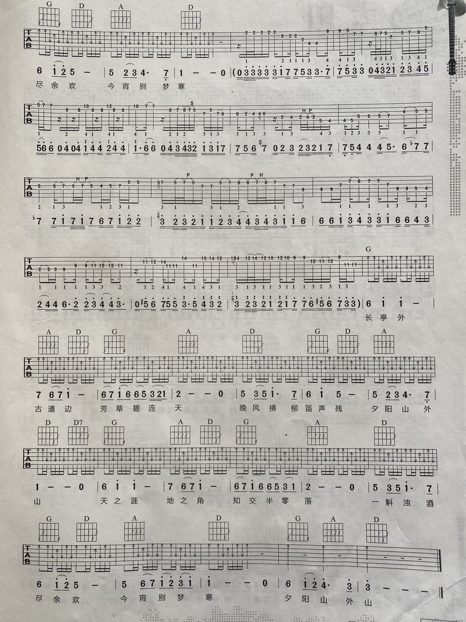 曲谱介绍: 唐朝乐队《送别》吉他谱_C调吉他弹唱谱