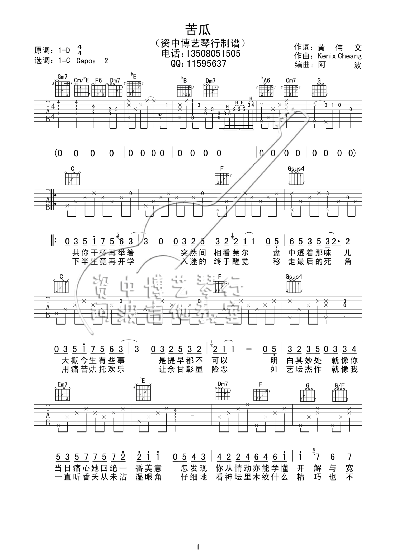 琴谱网为您精心推荐 苦瓜 高清图谱