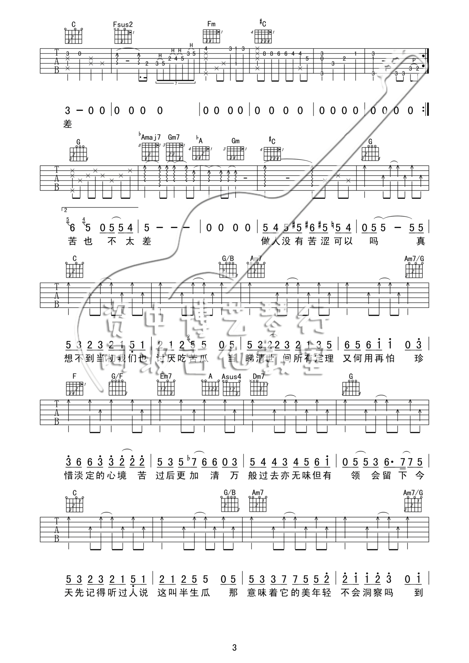 当前位置:琴谱网>吉他弹唱>苦瓜