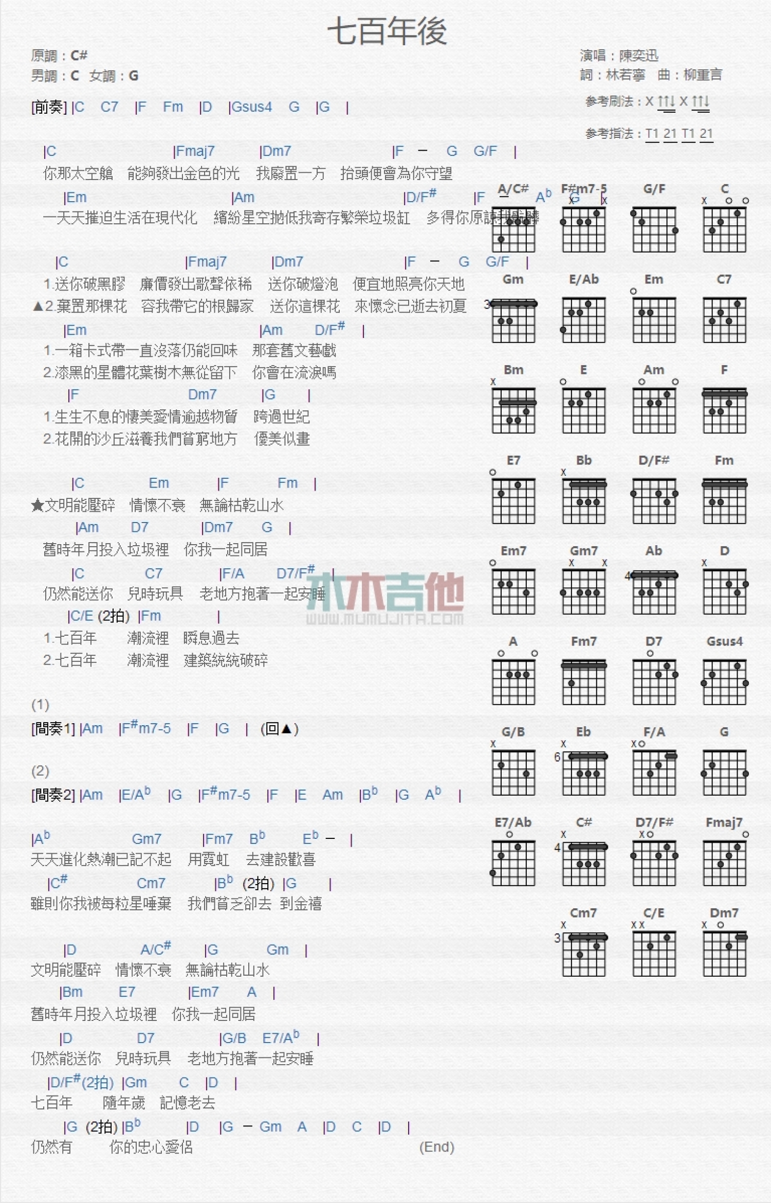 七百年后吉他谱 - 陈奕迅 - 吉他弹唱谱 - 和弦谱