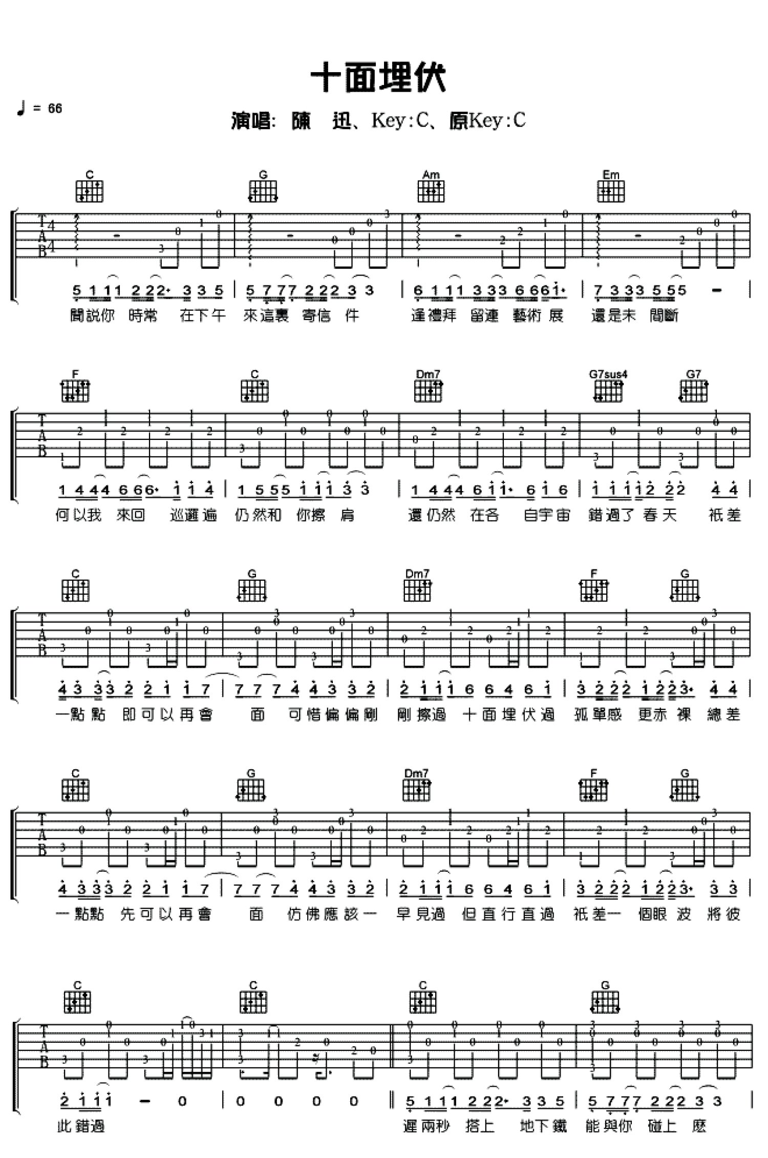 十面埋伏吉他谱 - 陈奕迅 - C调吉他弹唱谱