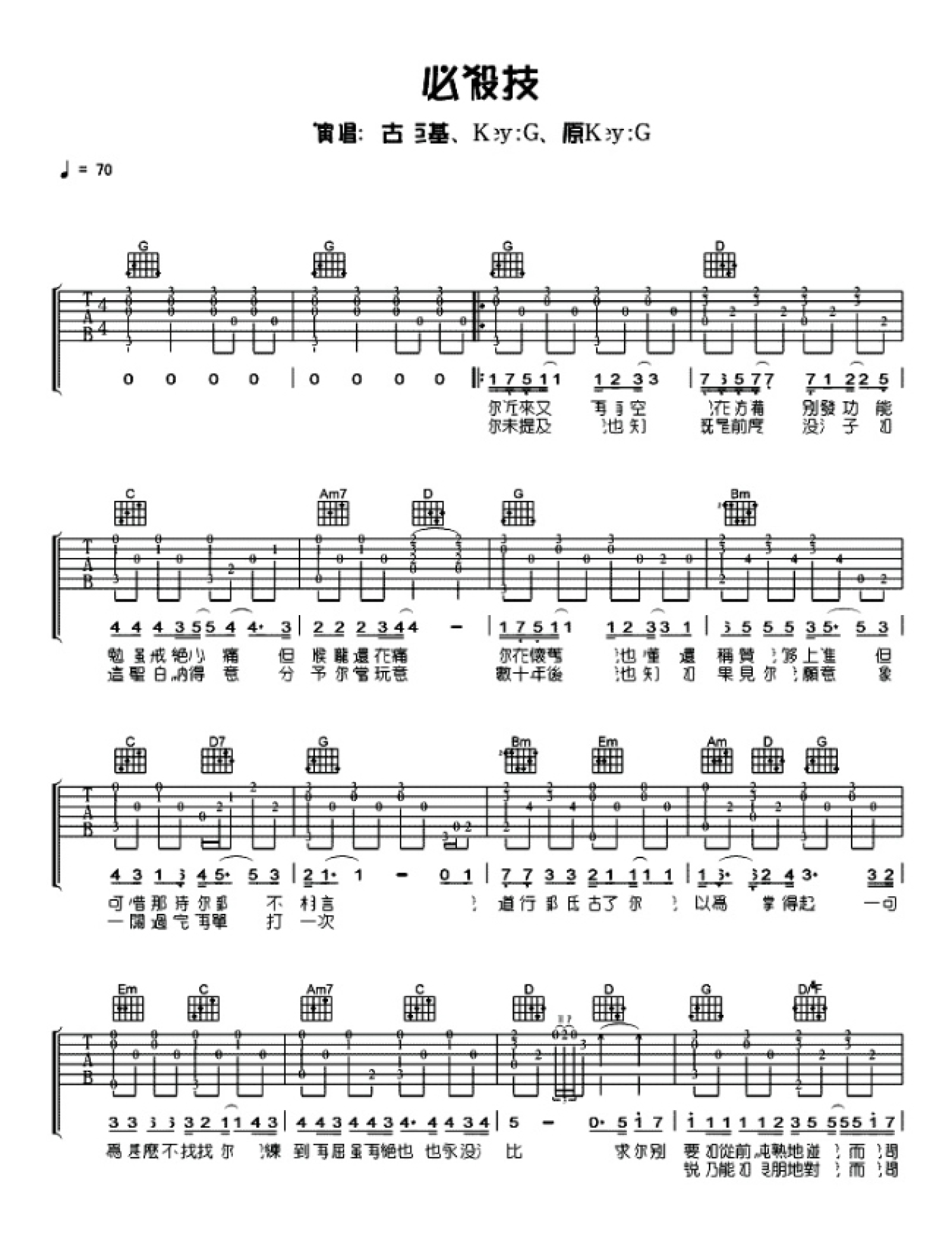 曲谱介绍: 《必杀技》吉他谱古巨基