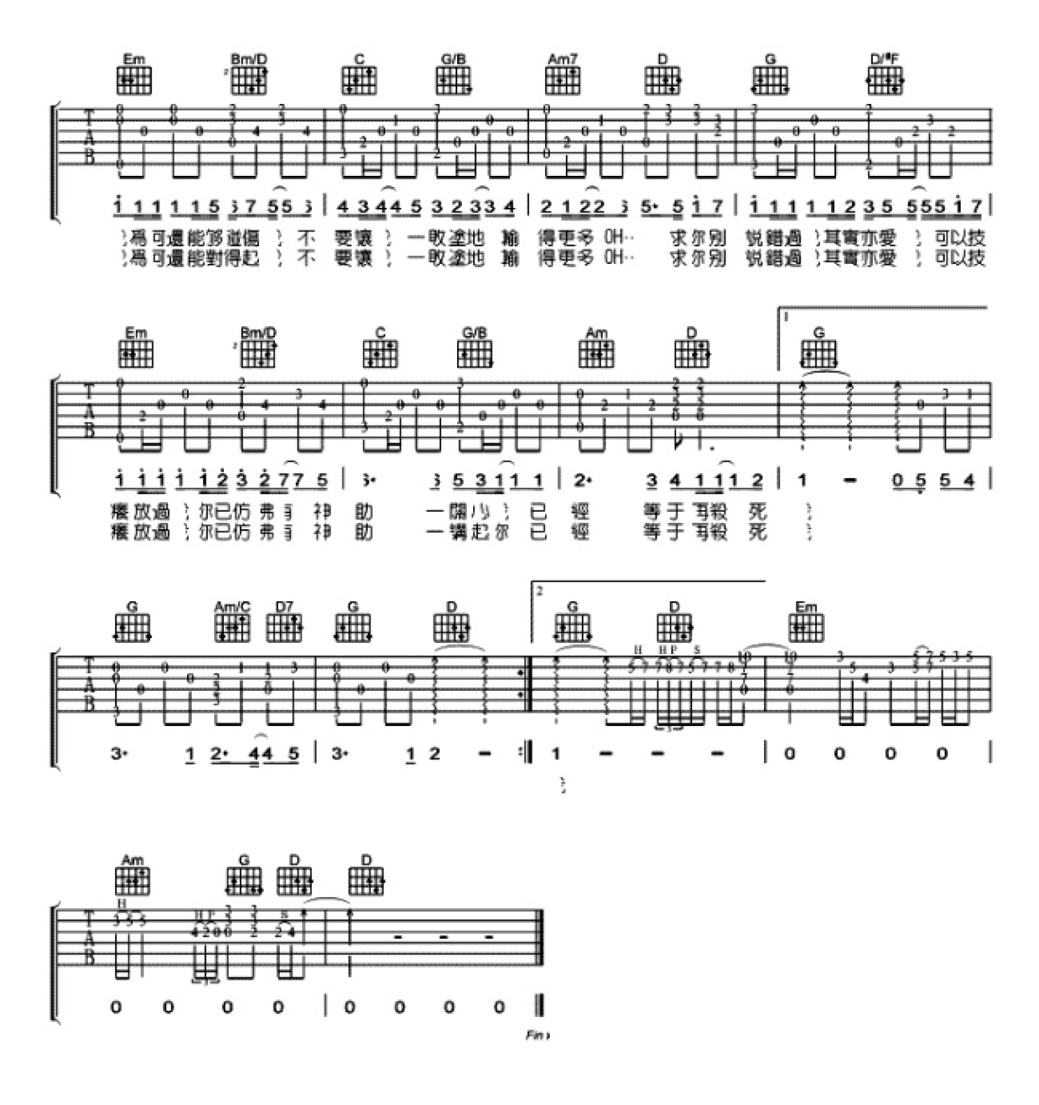 吉他弹唱G调来源:缘分吉他39650 浏览2018-12-21 10:22发布图谱共2页