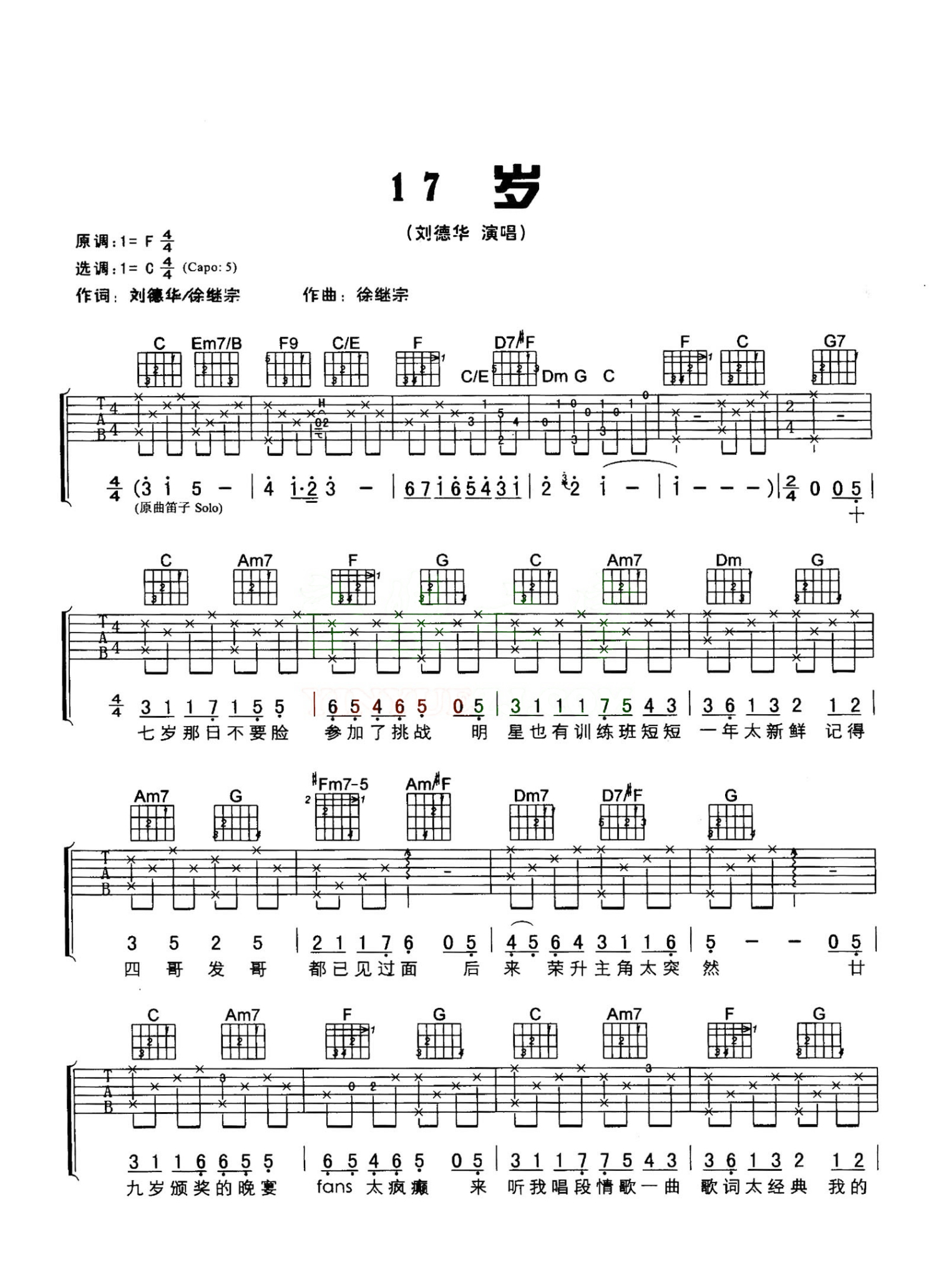 17岁吉他谱 - 刘德华 - C调吉他弹唱谱