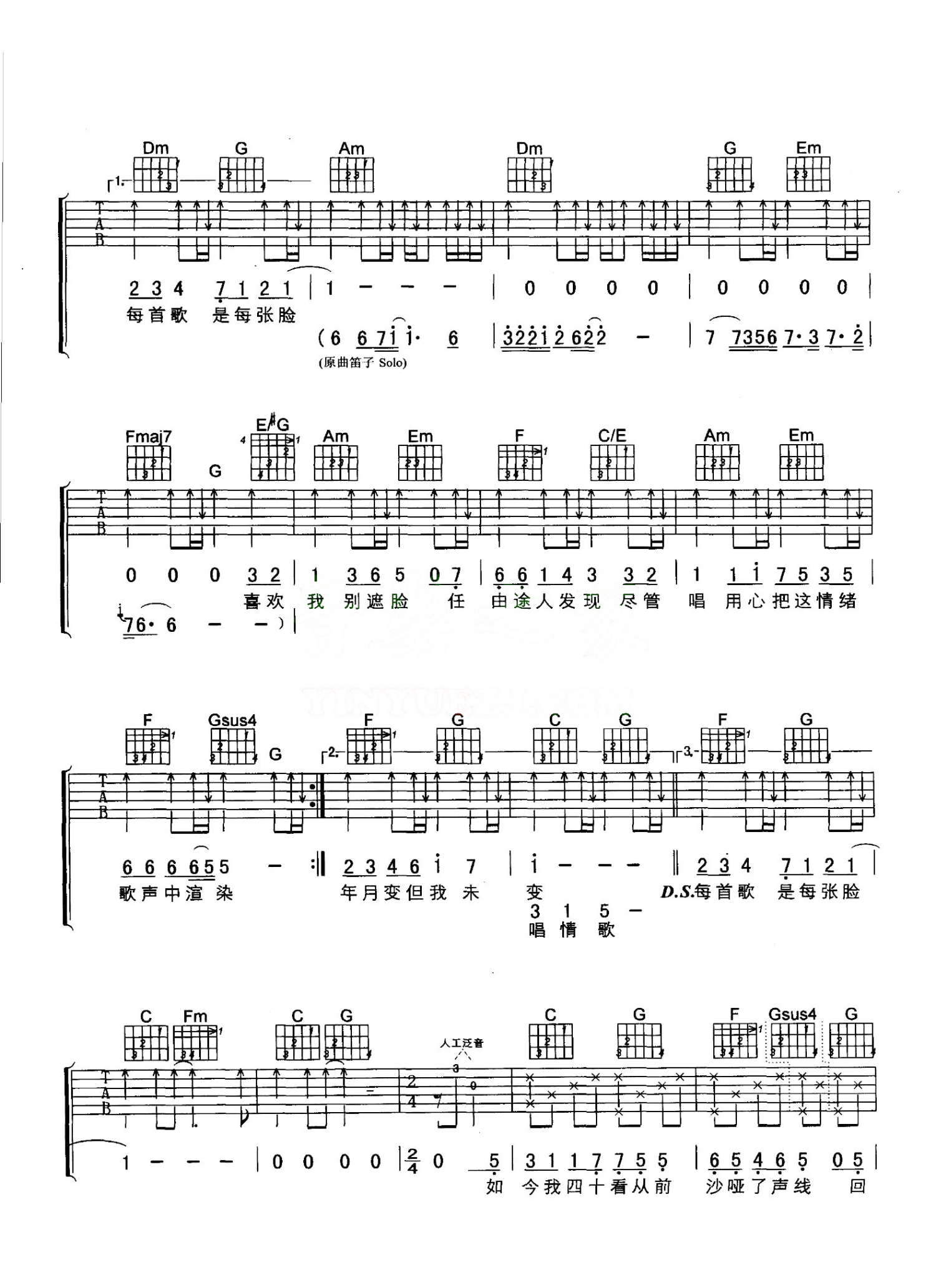 曲谱介绍: 原调F调,变调夹5品