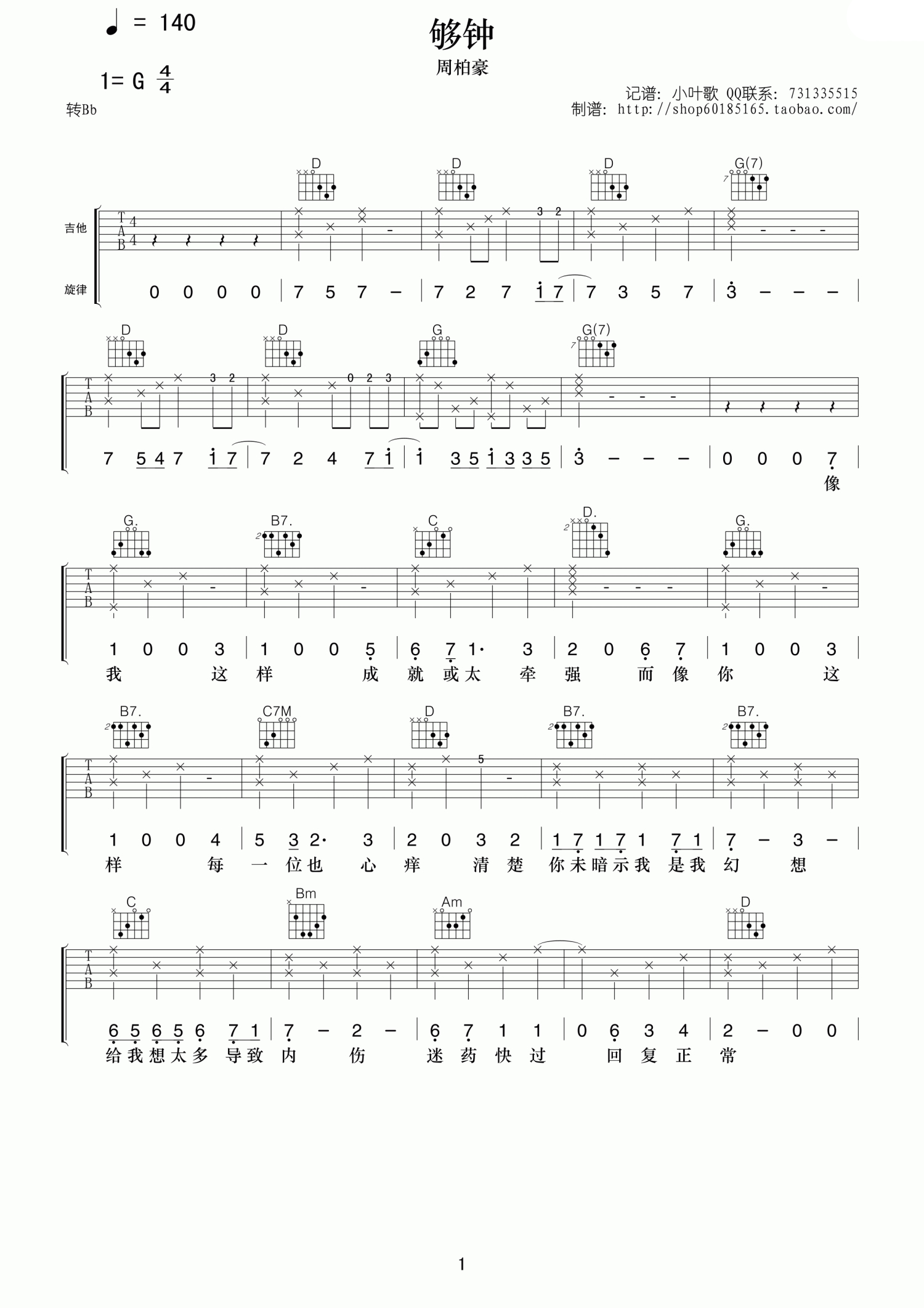 琴谱网为您精心推荐 够钟 高清图谱