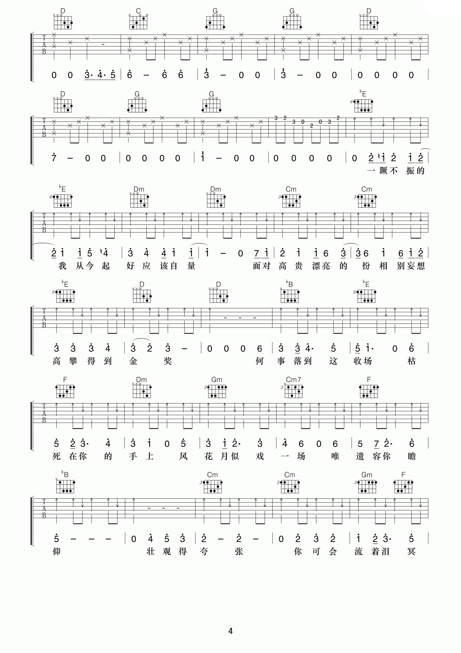当前位置:琴谱网>吉他弹唱>够钟