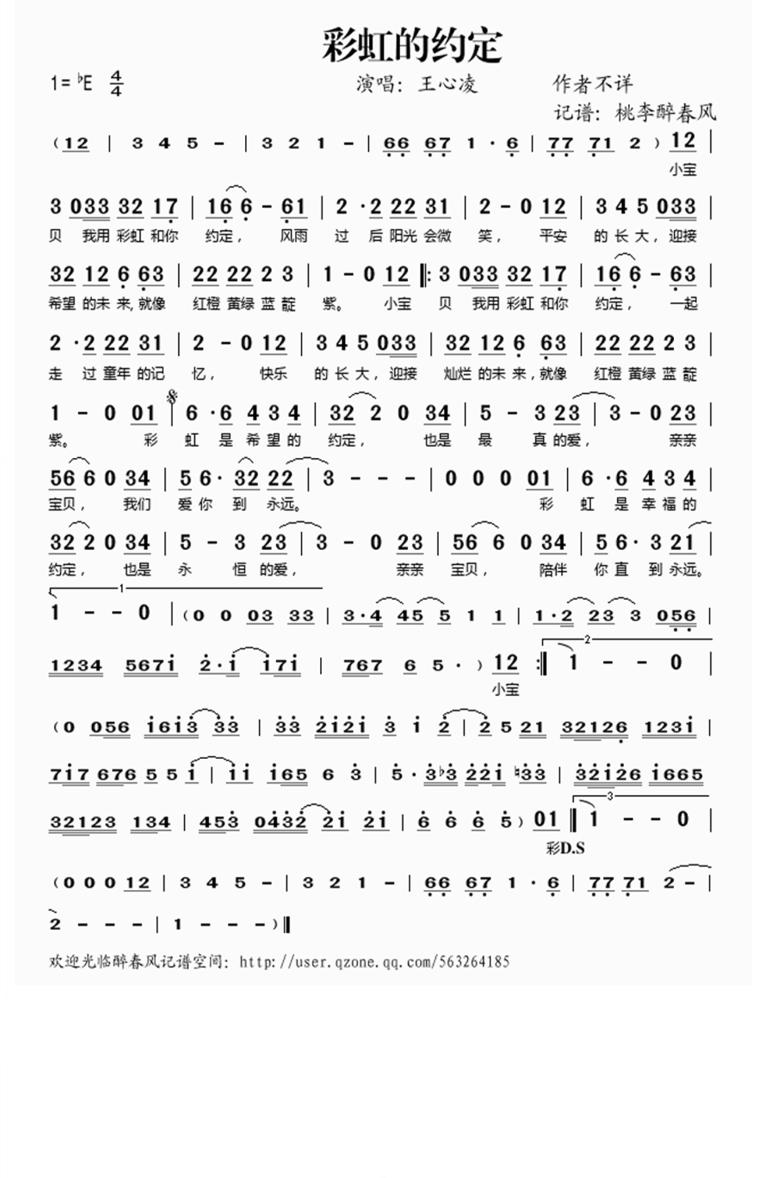 曲谱介绍: 王心凌《彩虹的约定》歌词_简谱