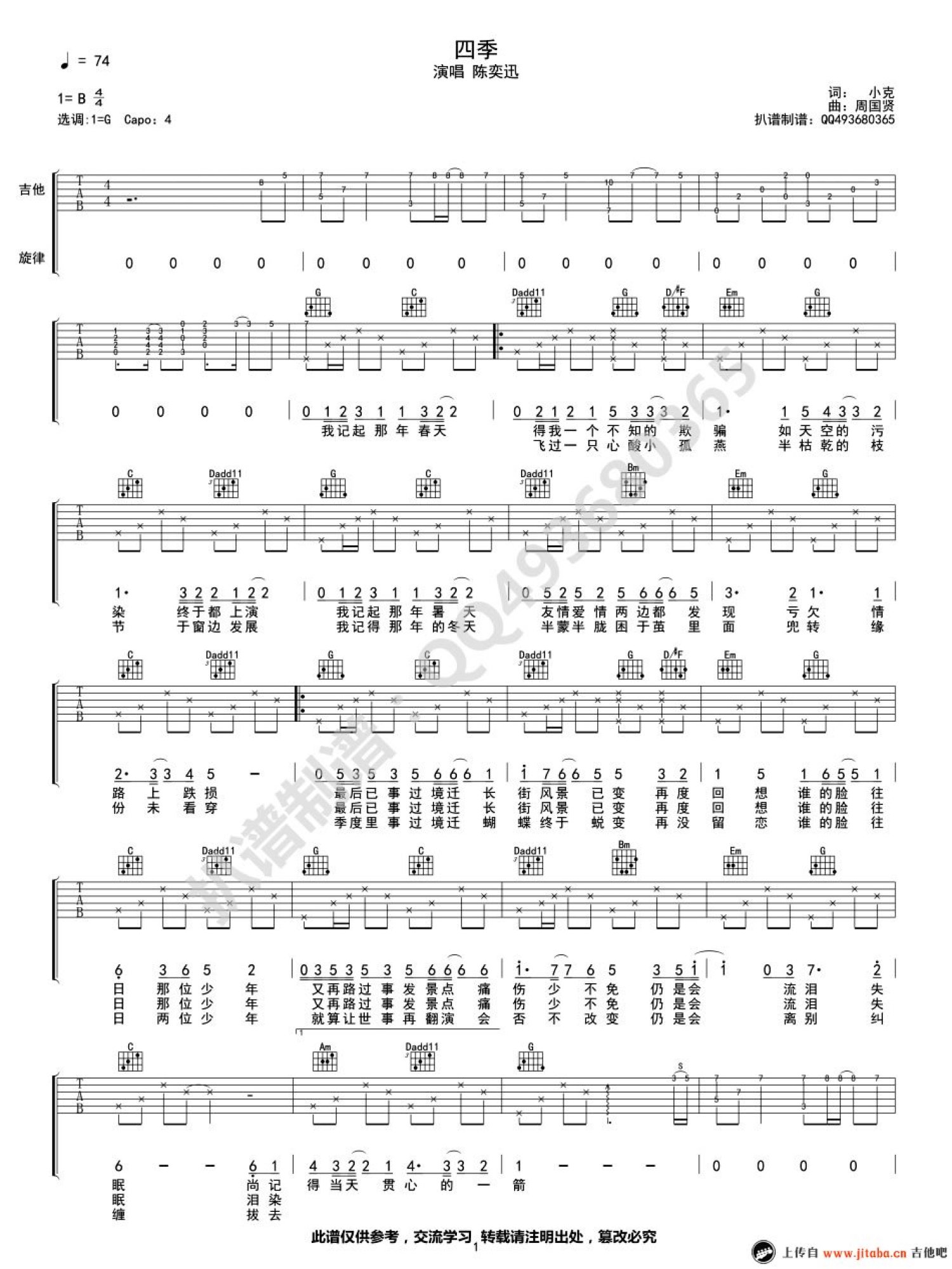 四季吉他谱 - 陈奕迅 - G调吉他弹唱谱