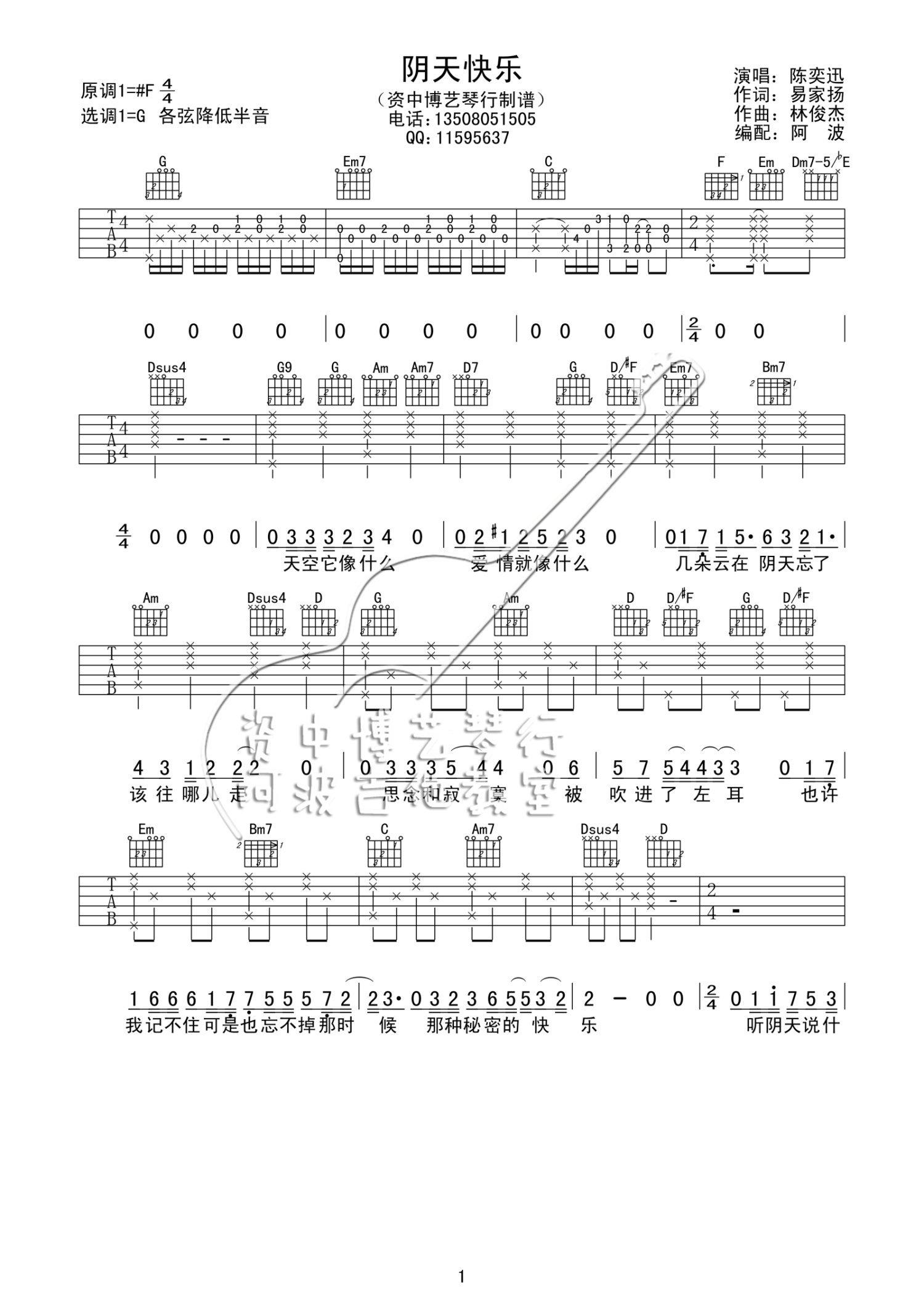 吉他弹唱G调来源:资中博艺琴行--阿波7378 浏览2018-12-22 10:26发布图谱共4页