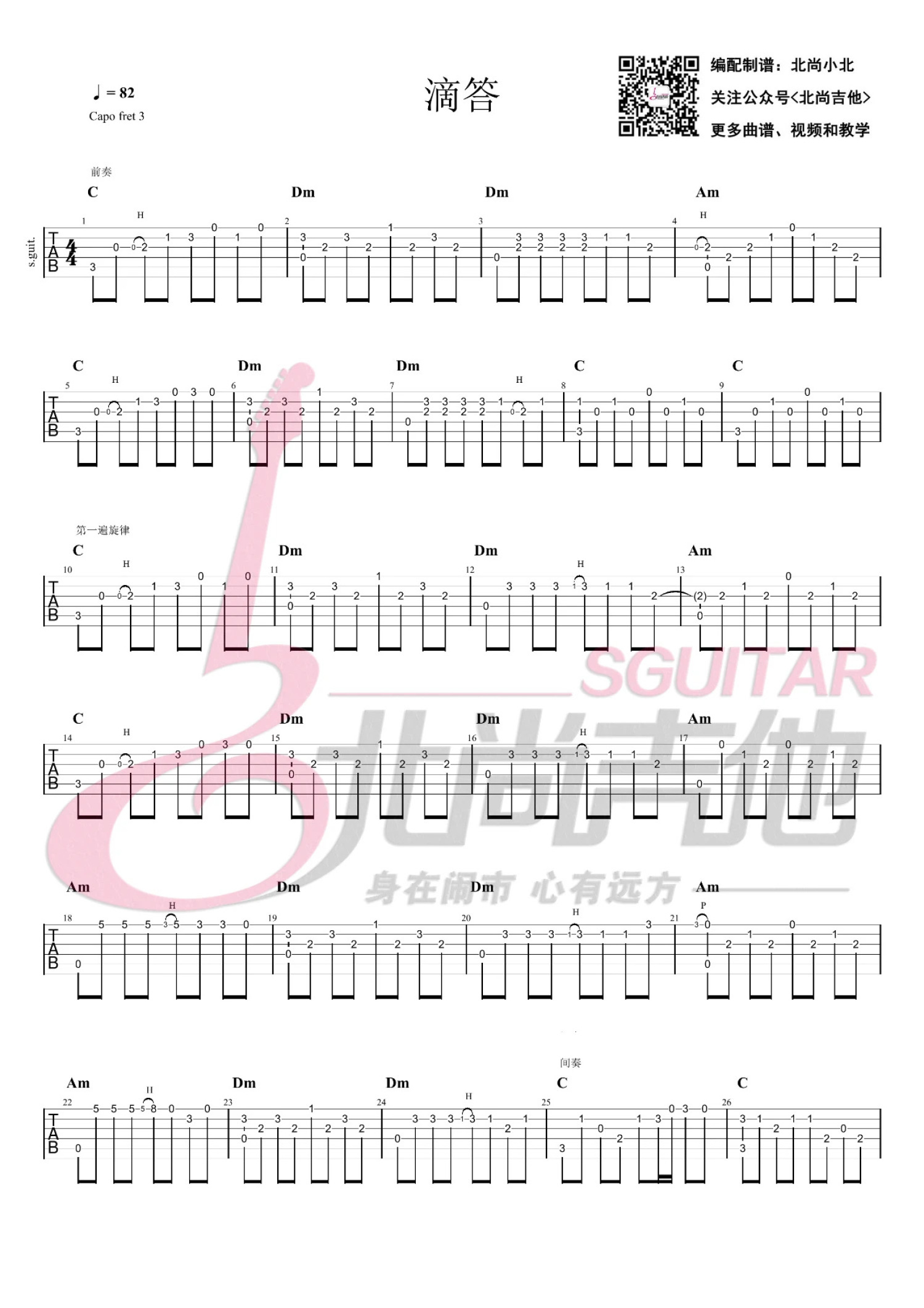 曲谱介绍: 侃侃《滴答》吉他谱_C调吉他独奏谱