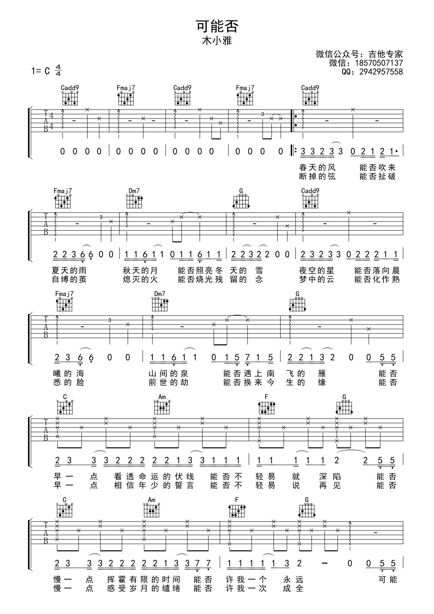 • 可能否吉他谱 - 木小雅 - C调吉他弹唱谱第1张