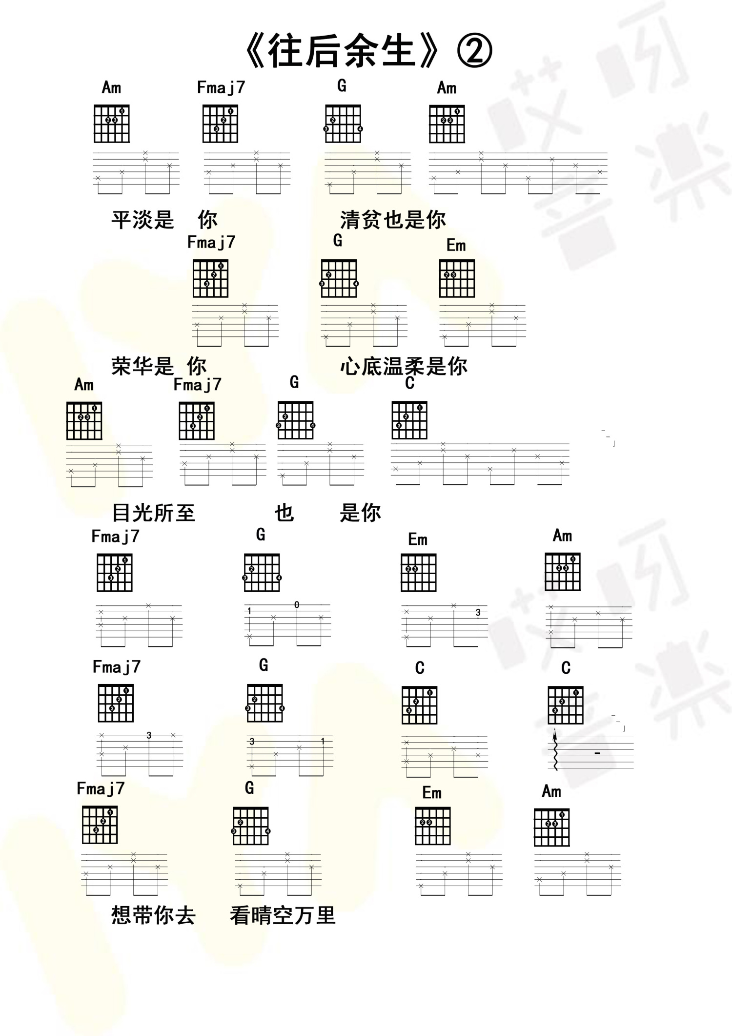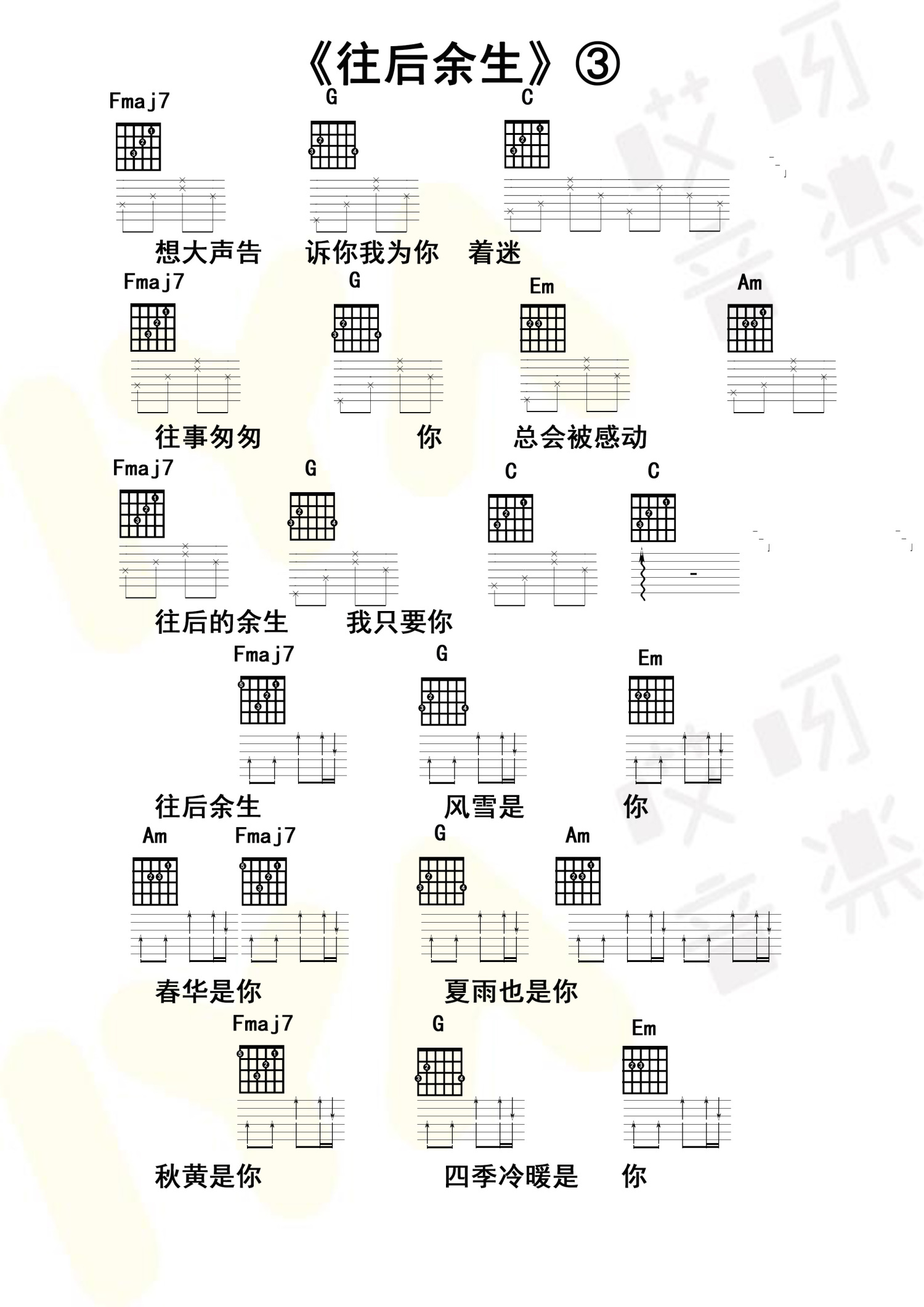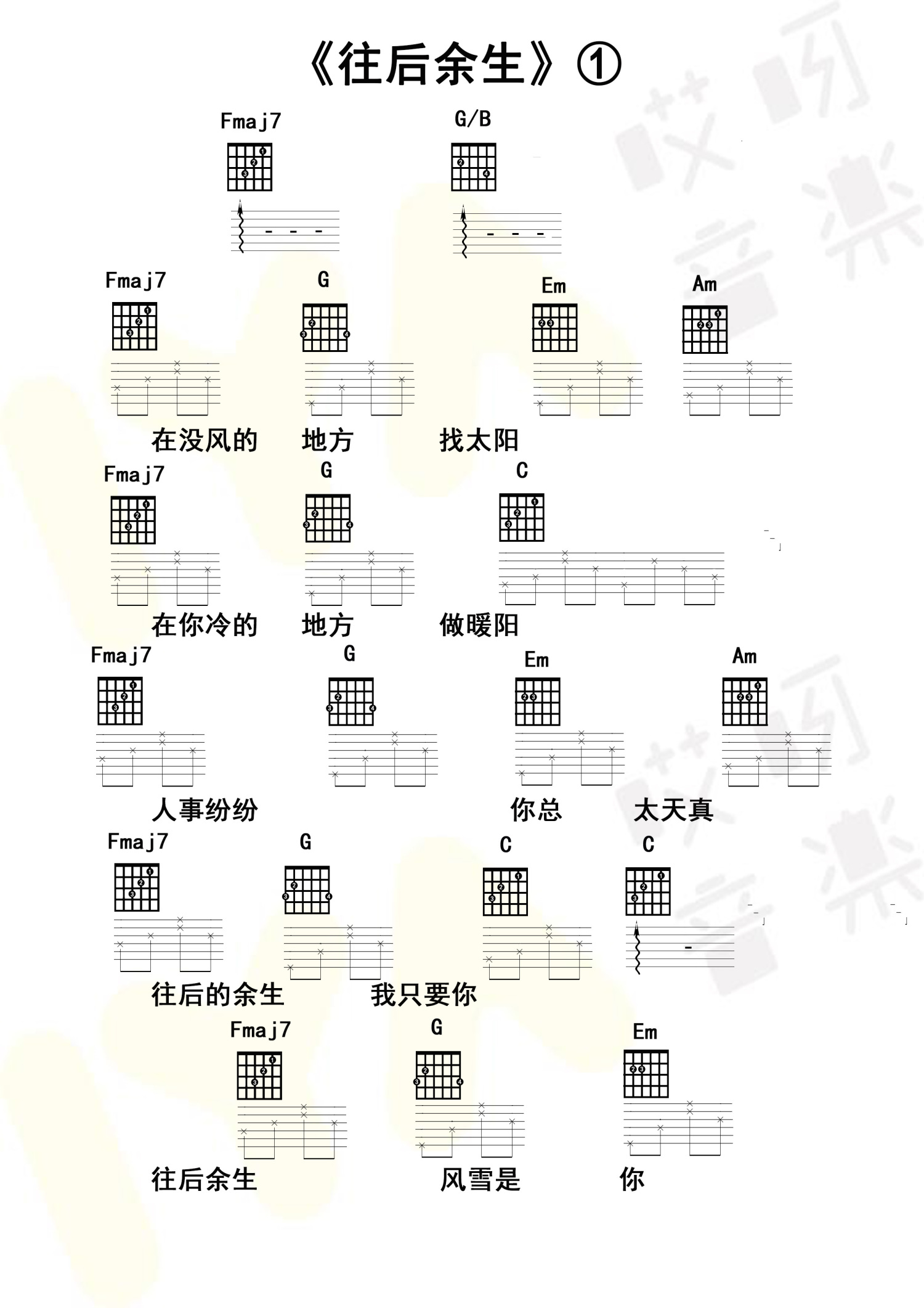 当前位置:琴谱网>吉他弹唱>往后余生