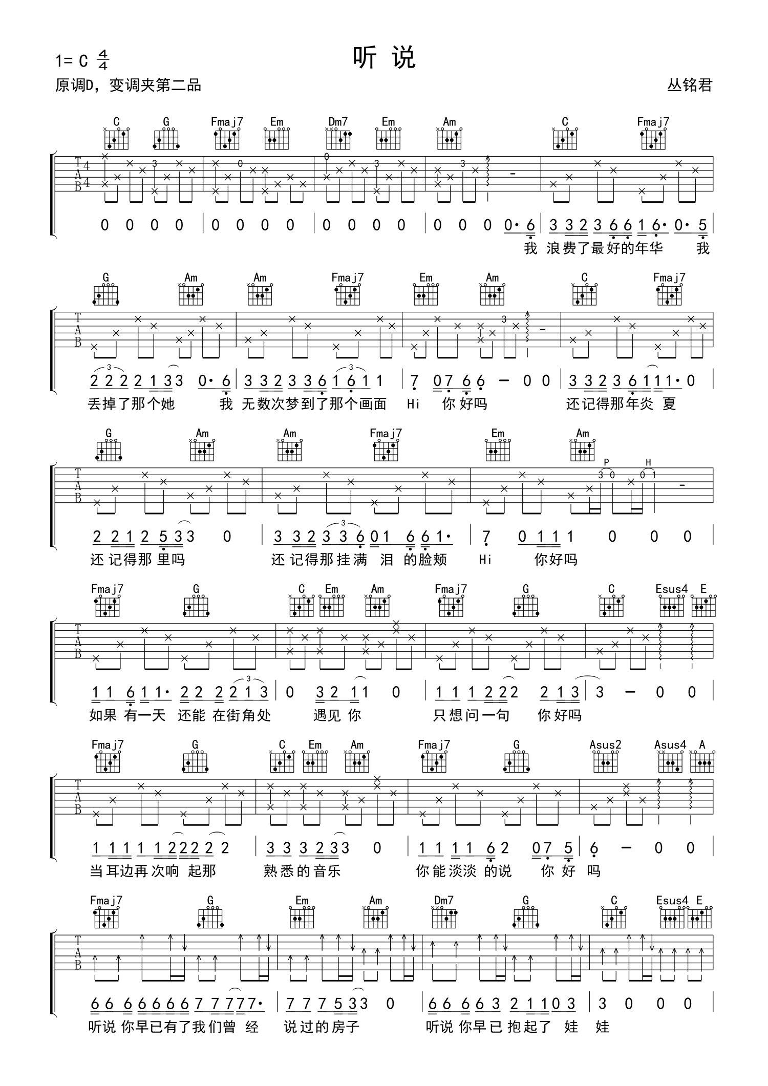 • 听说吉他谱 - 丛铭君 - C调吉他弹唱谱第1张
