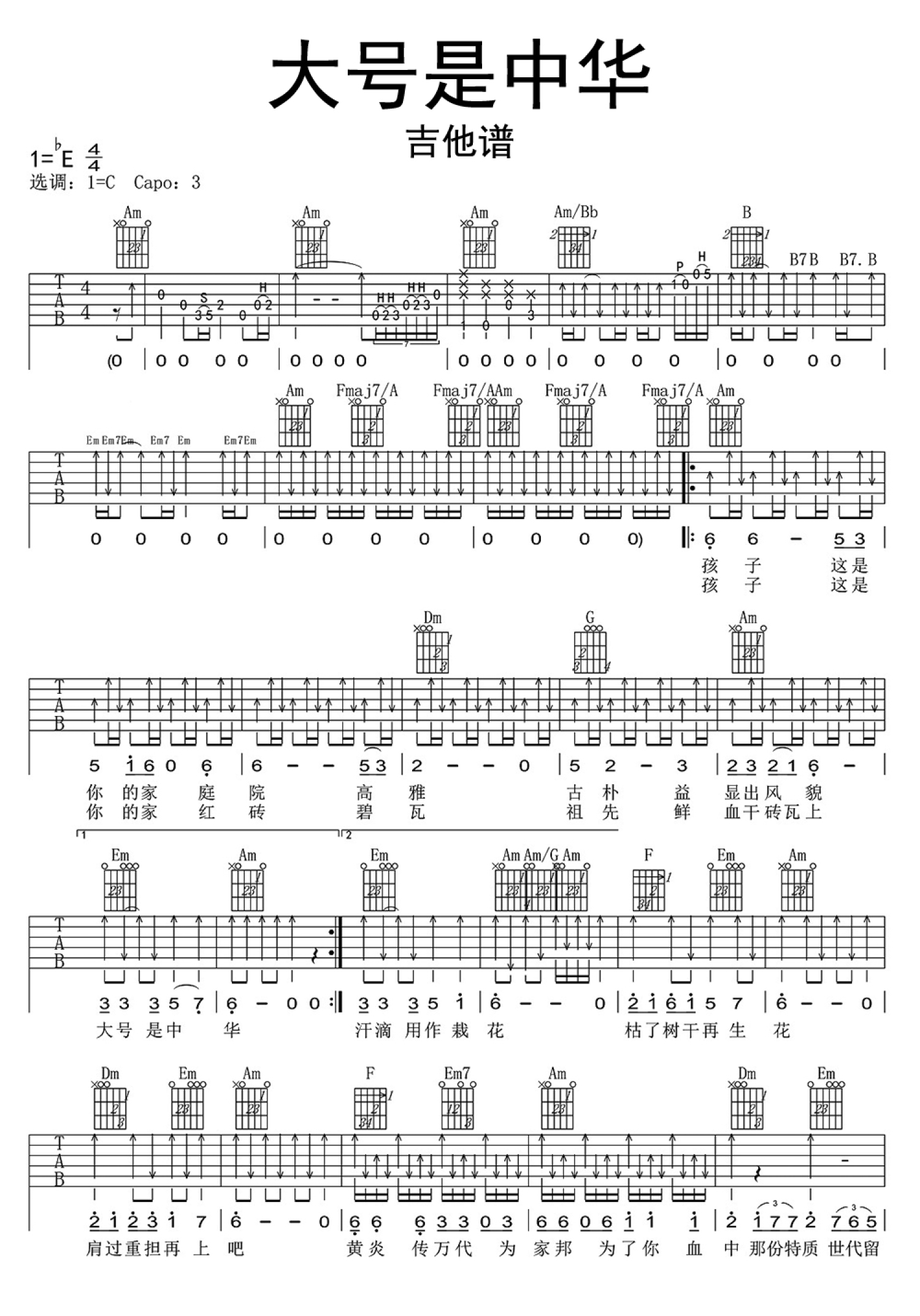 当前位置:琴谱网>吉他弹唱>大号是中华