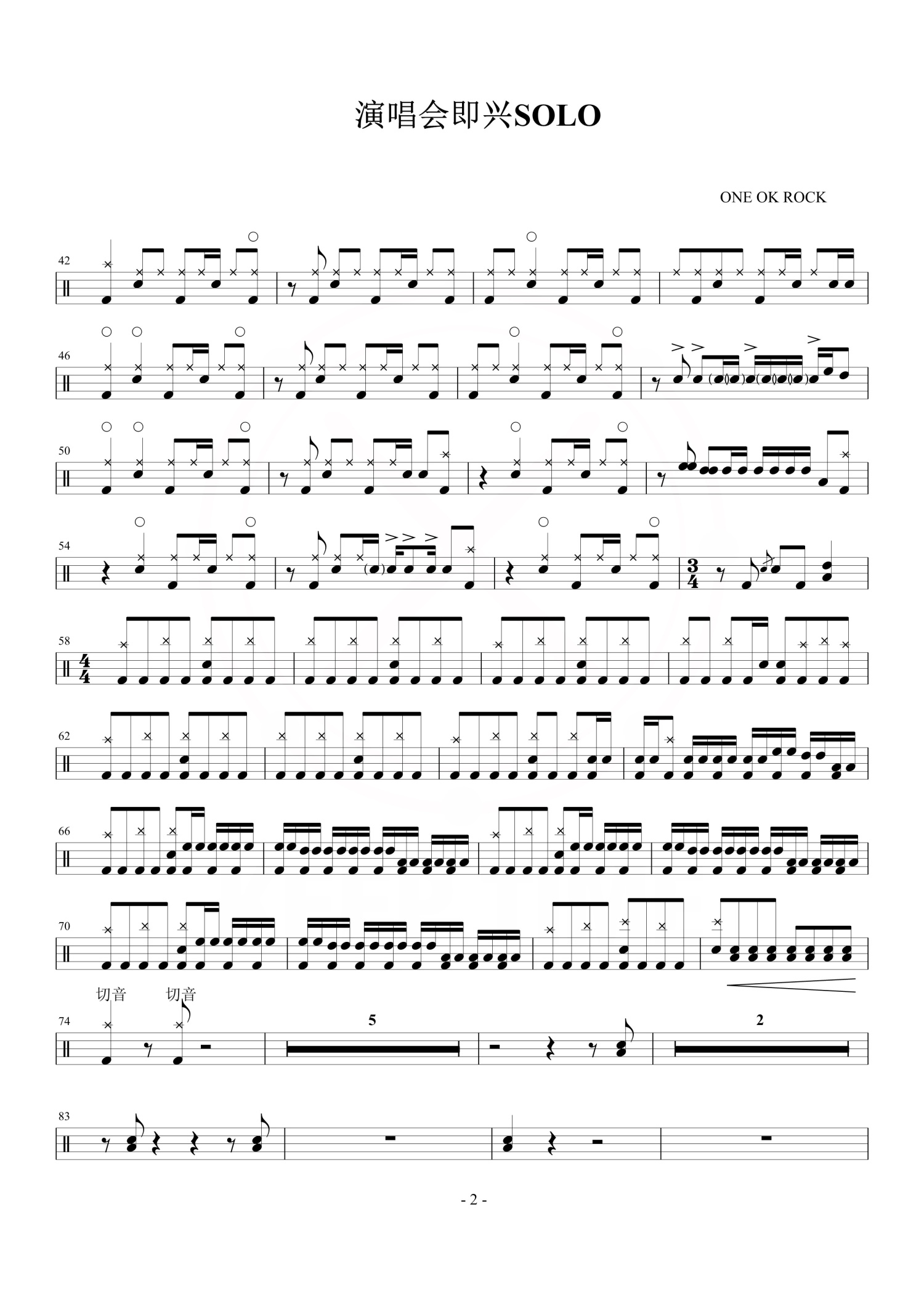 演唱会即兴SOLO鼓谱 - ONE OK ROCK - 架子鼓谱