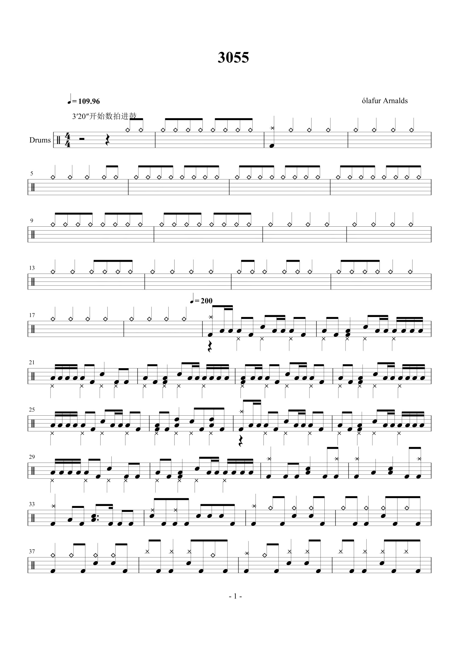 3055鼓谱 - ólafur Arnalds - 架子鼓谱