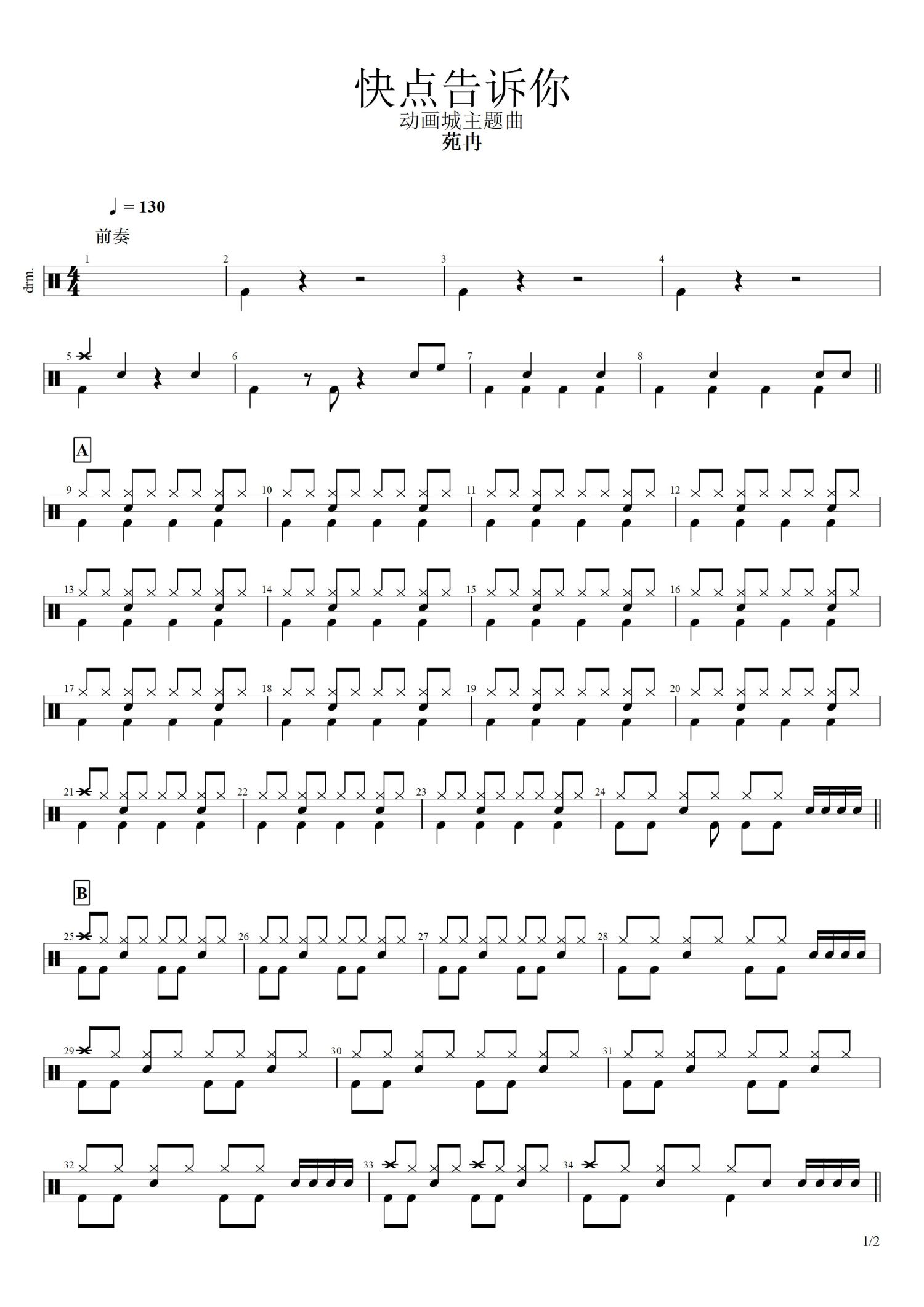 快点告诉你鼓谱 - 苑冉 - 架子鼓谱