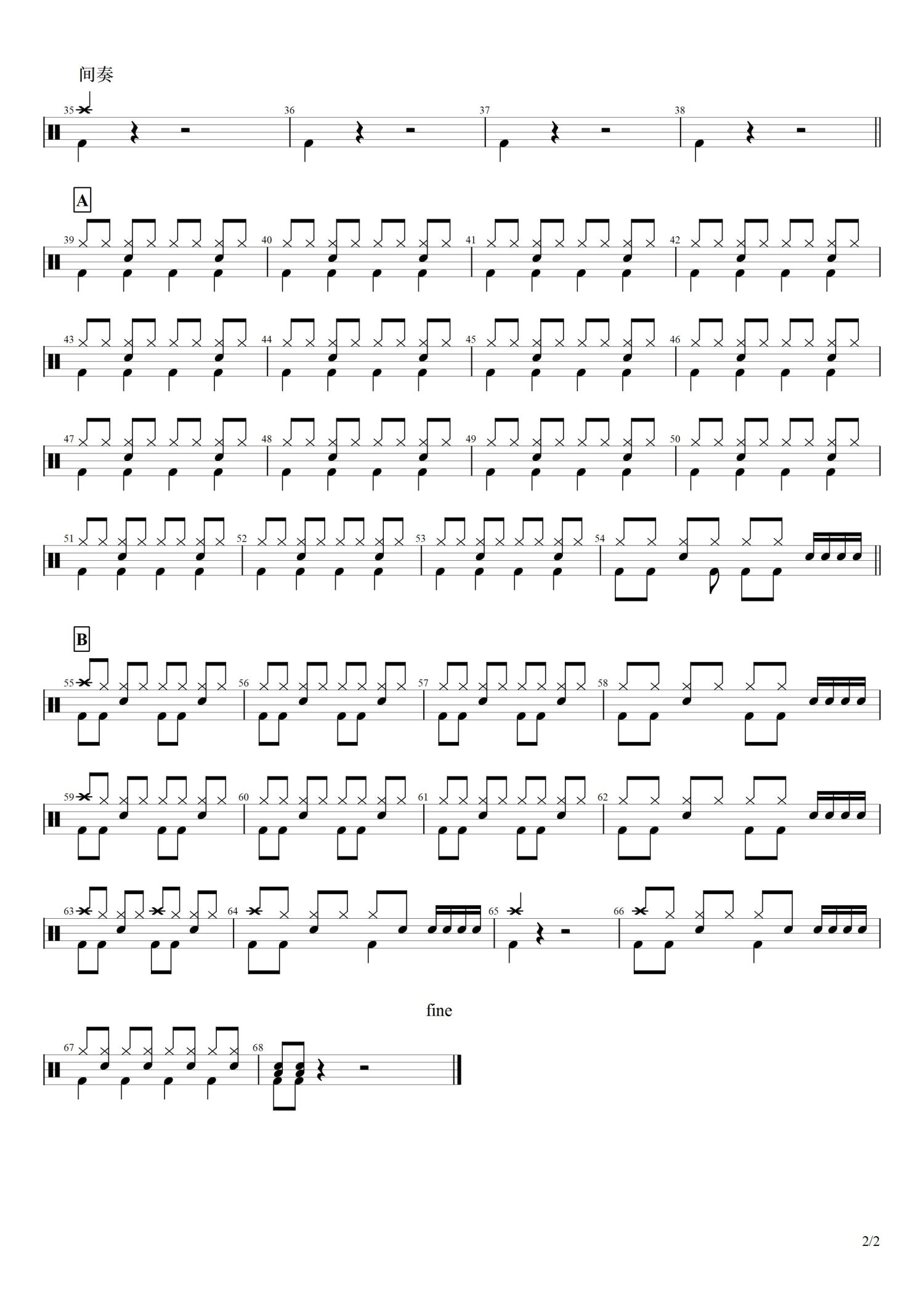 架子鼓谱原调来源:萧然718 浏览2022-01-02 23:10发布图谱共2页