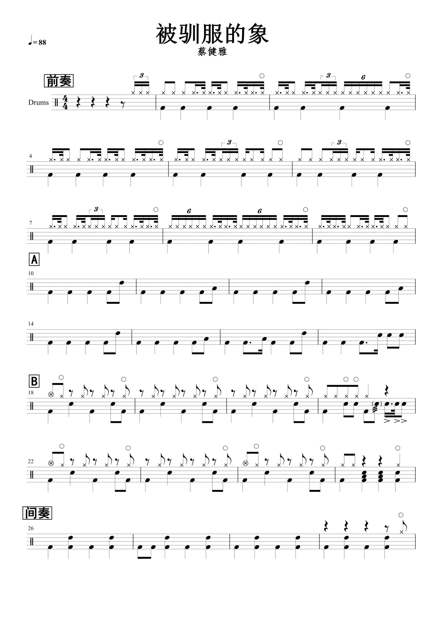 被驯服的象鼓谱 - 蔡健雅 - 架子鼓谱