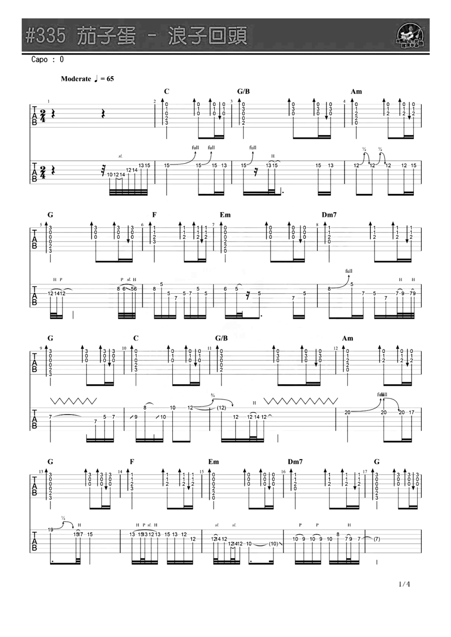 浪子回头吉他谱 - 茄子蛋 - 吉他弹唱谱