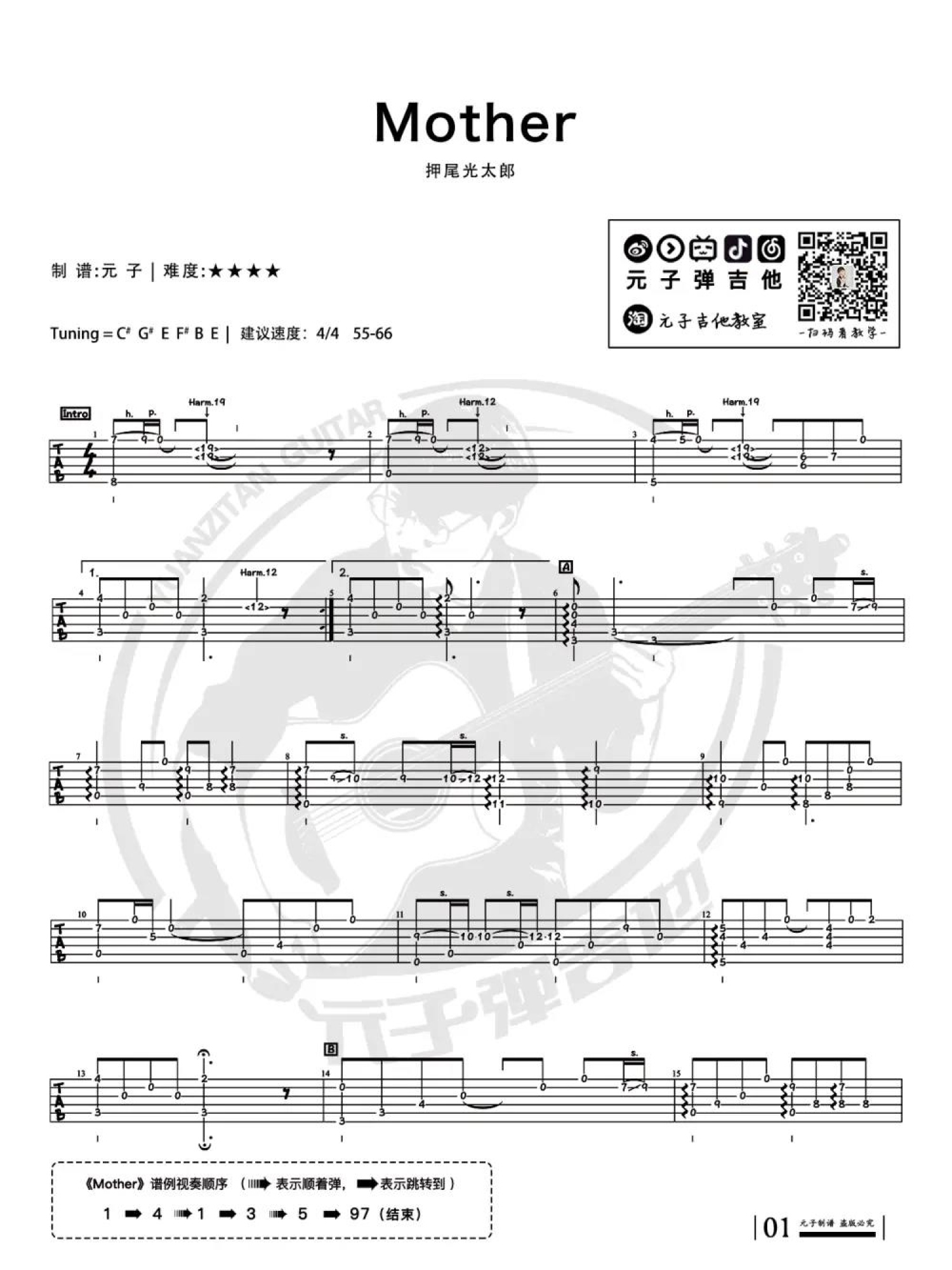 曲谱介绍: 押尾光太郎《Mother》吉他谱_C调吉他独奏谱