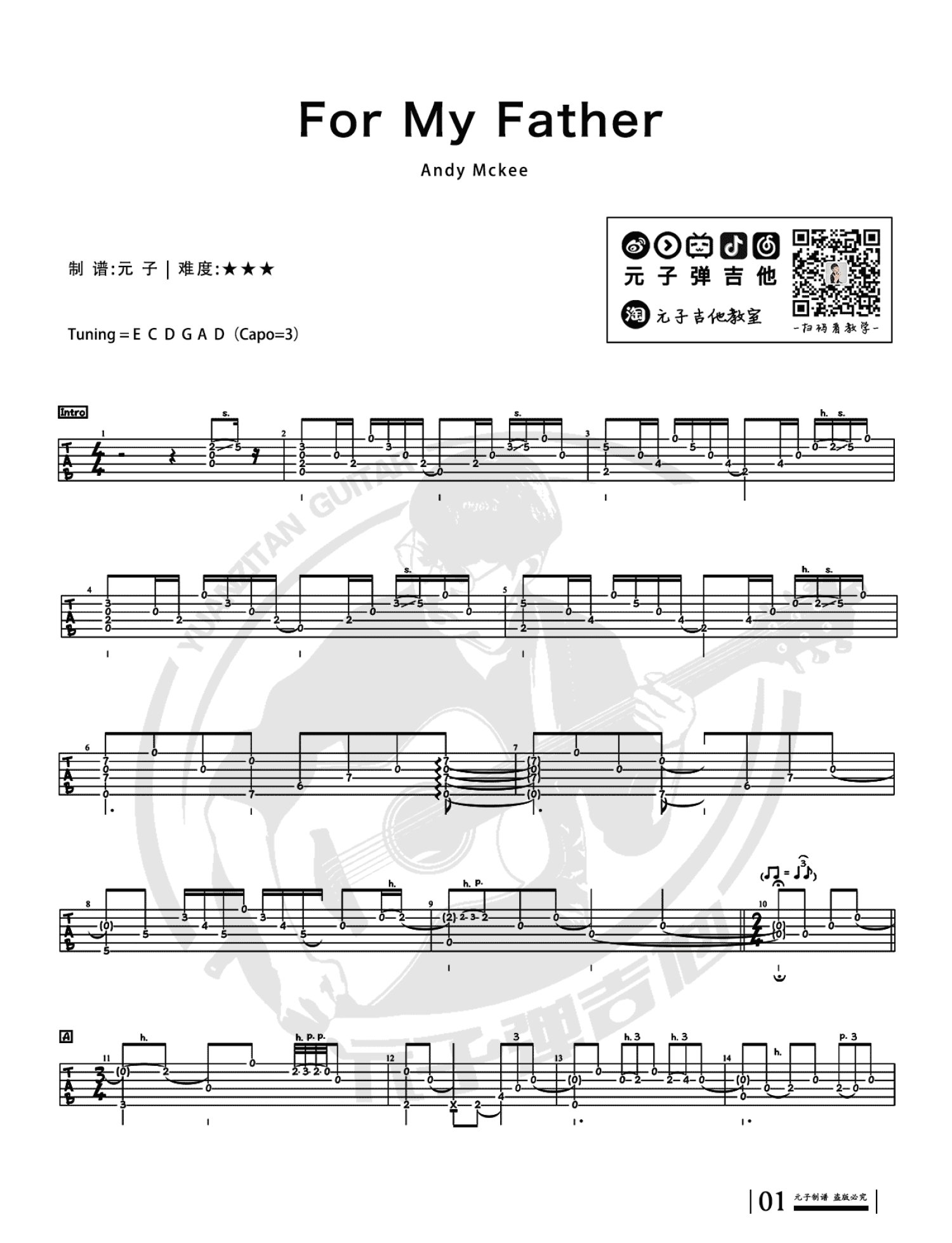 曲谱介绍: Andy Mckee《For My Father》吉他谱_吉他独奏谱