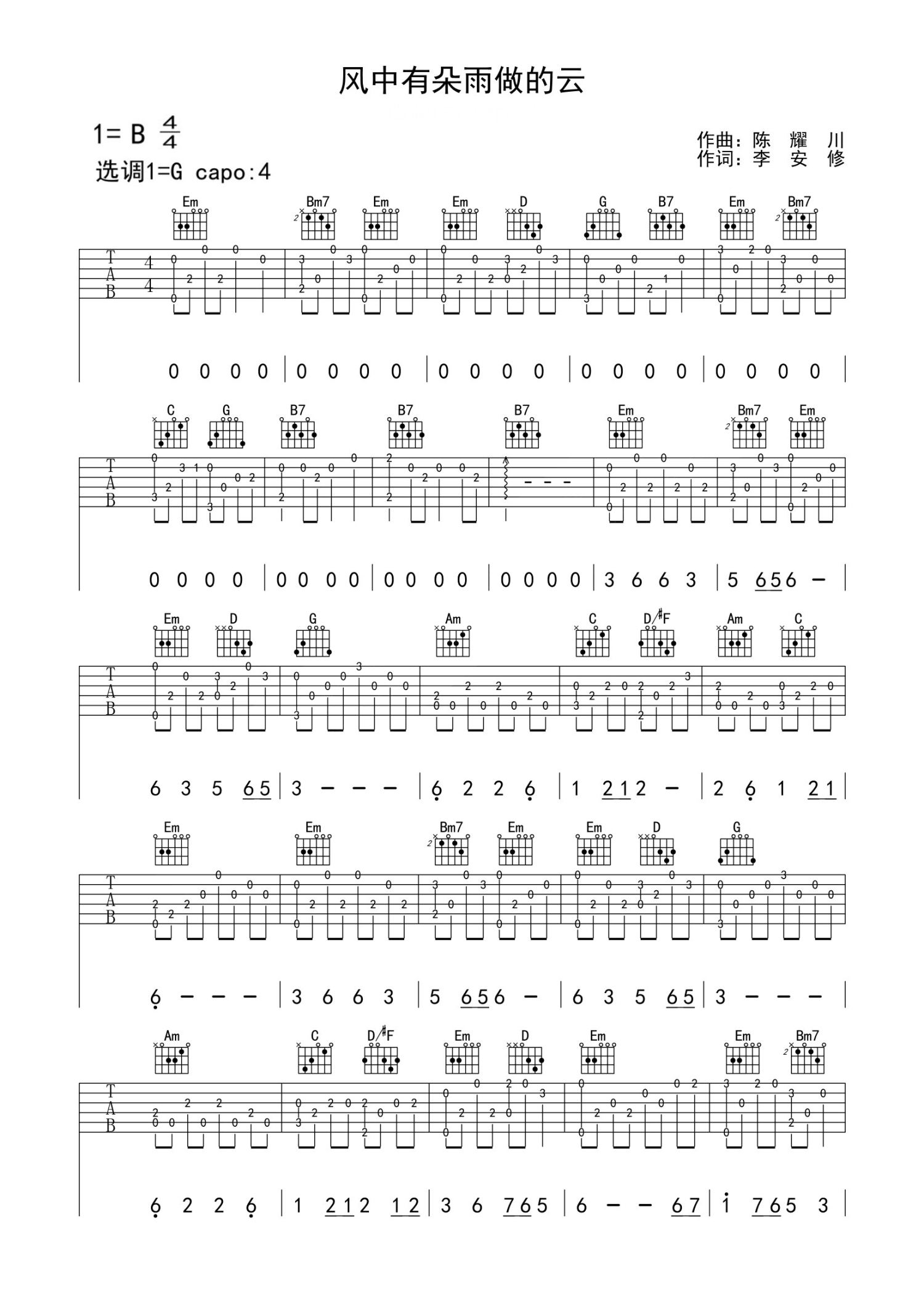 当前位置:琴谱网>吉他独奏>风中有朵雨做的云