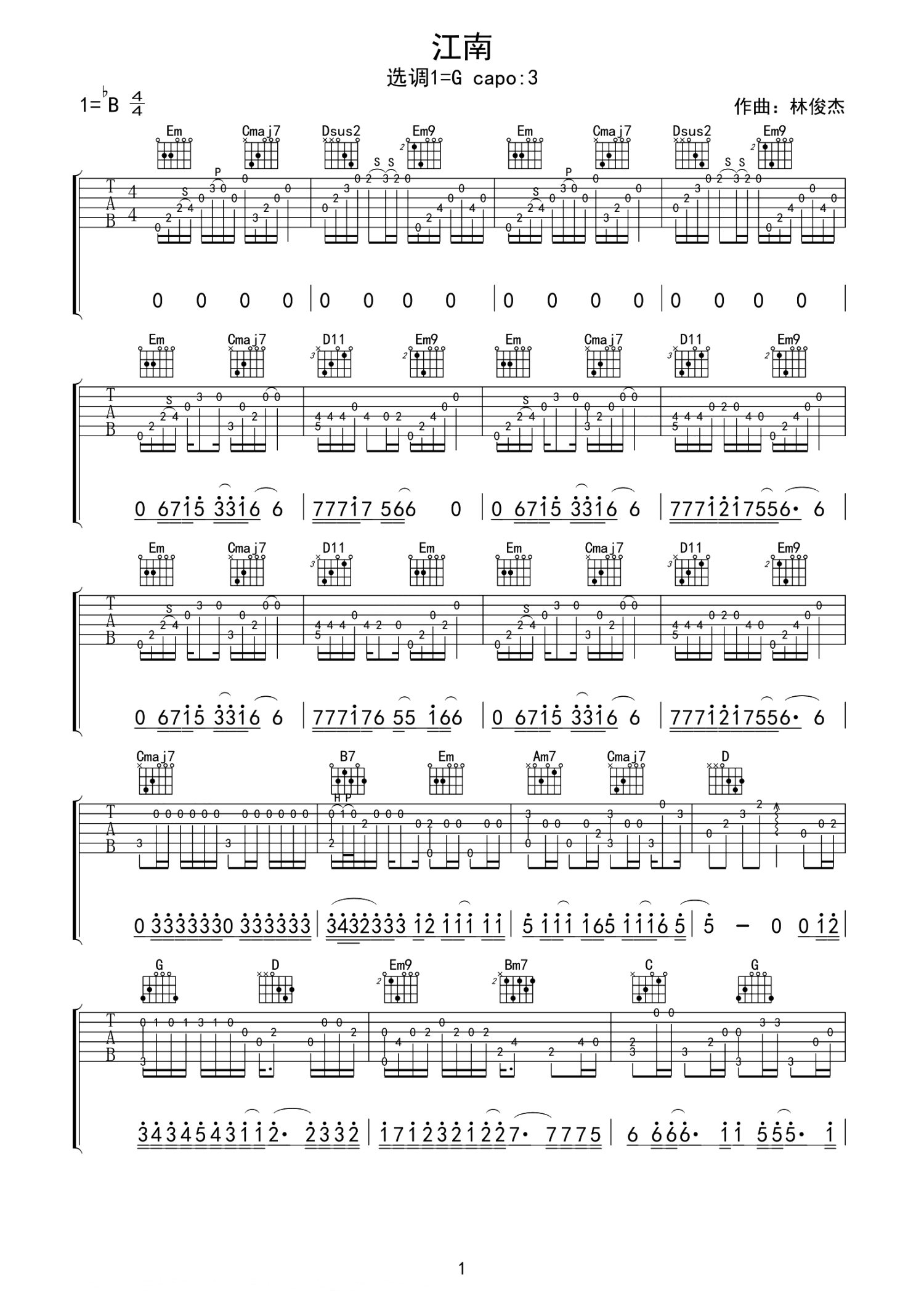 • 江南吉他谱 - 林俊杰 - G调吉他弹唱谱第1张