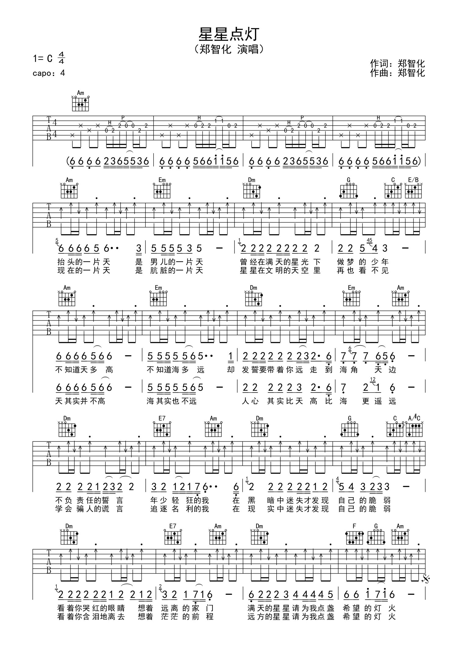 星星点灯吉他谱 - 郑智化 - C调吉他弹唱谱