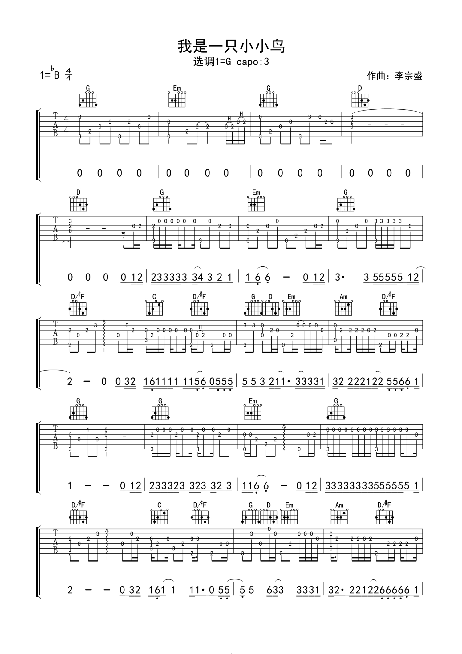 • 我是一只小小鸟吉他谱 - 李宗盛 - G调吉他独奏谱第1张